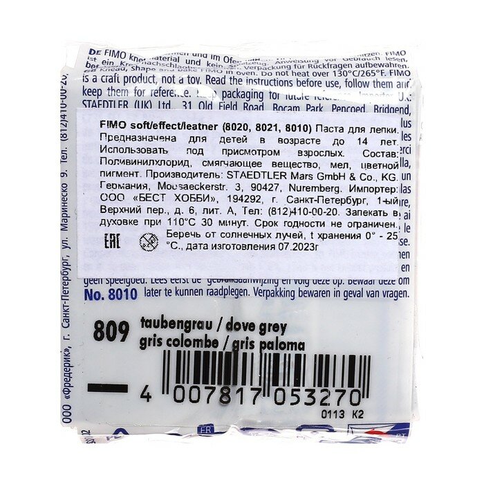Отзывы на FIMO Leather-effect полимерная глина, запекаемая в печке, уп. 57г цв. голубо-серый 8010-809