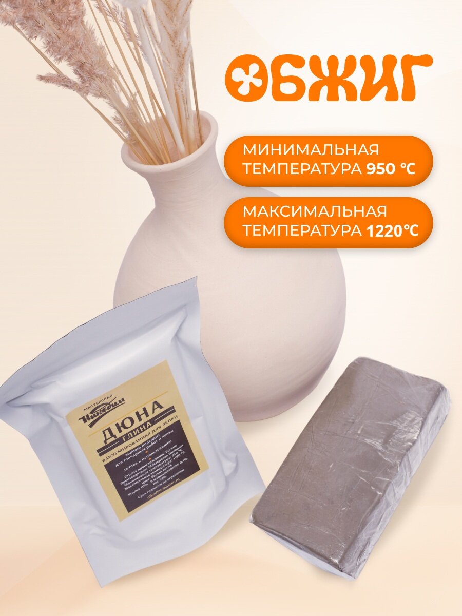 Глина для лепки и гончарного круга "Дюна" с шамотом 0.2мм 10 кг информация: