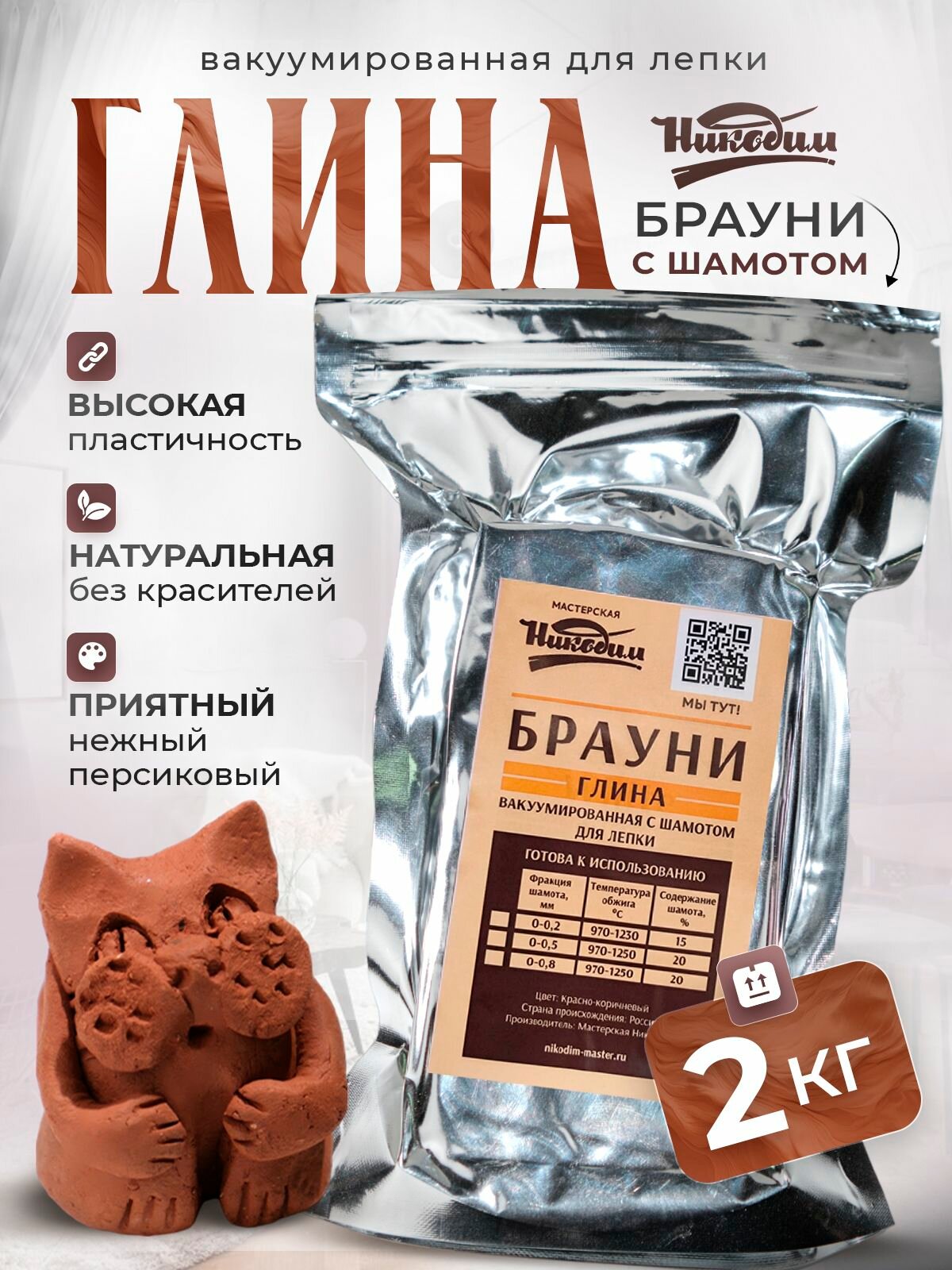 Глина натуральная шамотированная Брауни 2 кг (0 - 0,5 мм) для лепки информация: