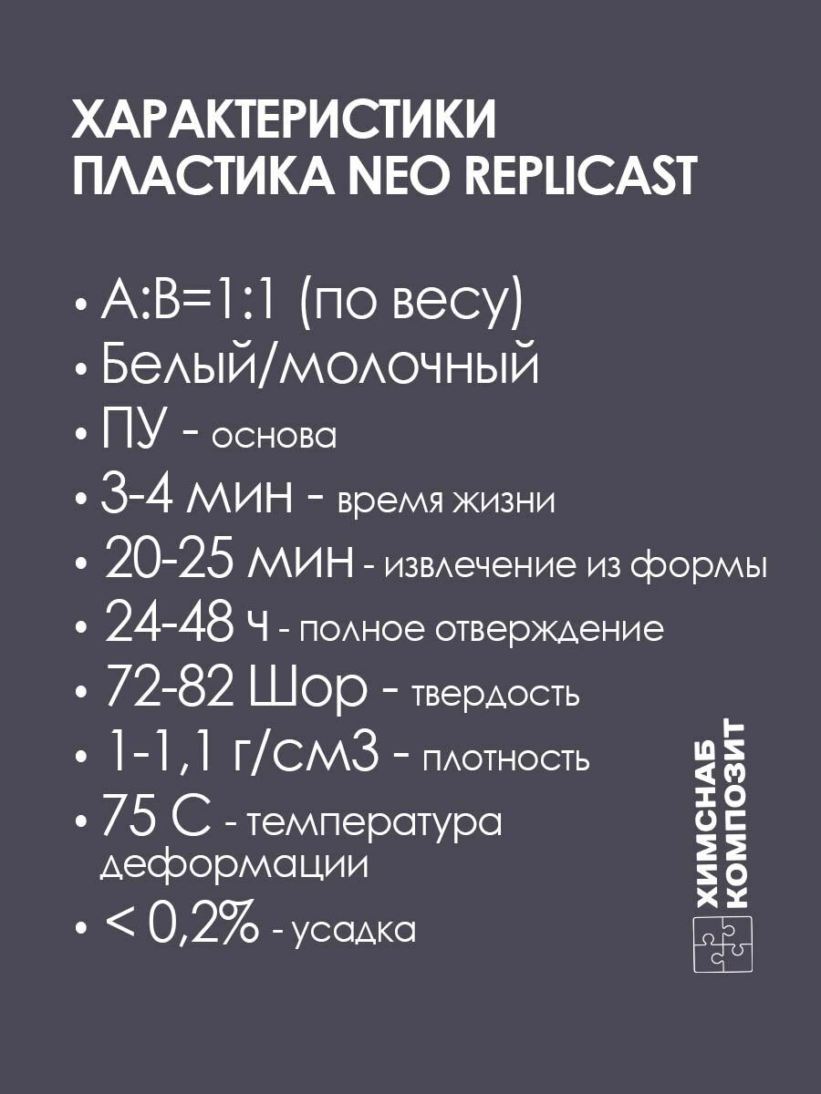 Пластик жидкий литьевой полиуретановый двухкомпонентный для заливки в форму, Replicast NEO 2 кг информация: