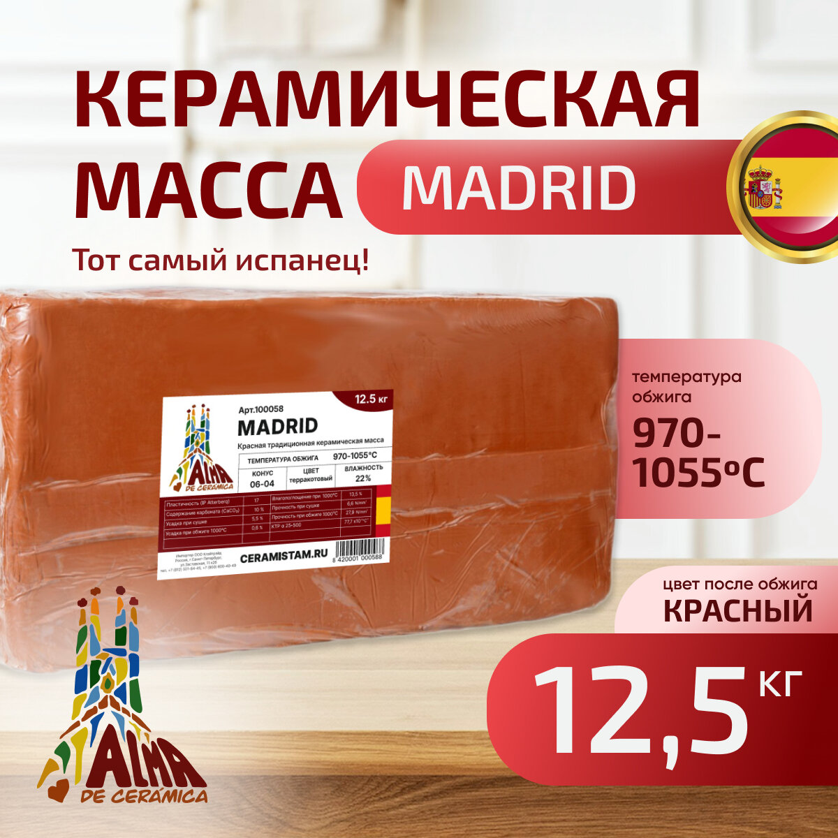 Глина MADRID, Alma de Ceramica (12,5 кг), низкотемпературная красная керамическая масса (100058) информация: