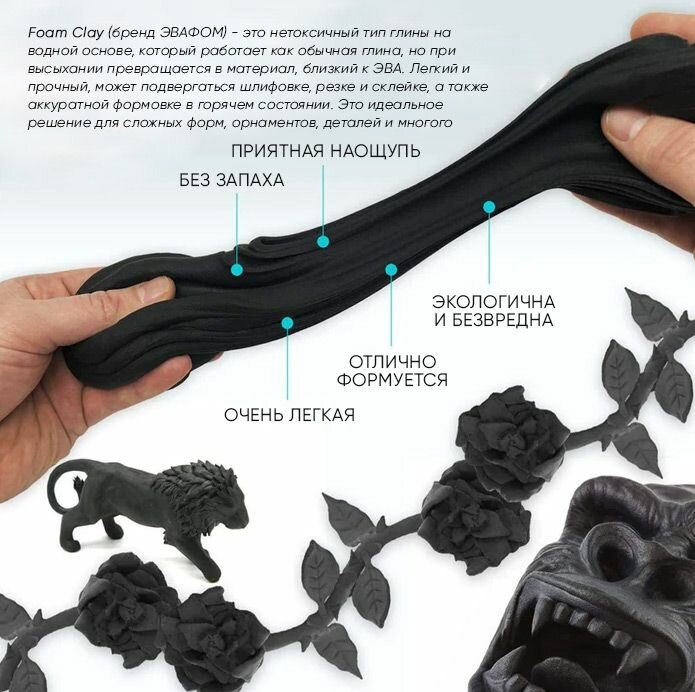 Отзывы на Глина Foam Clay самозатвердевающая / черный цвет, 1000 мл / для косплея, лепки