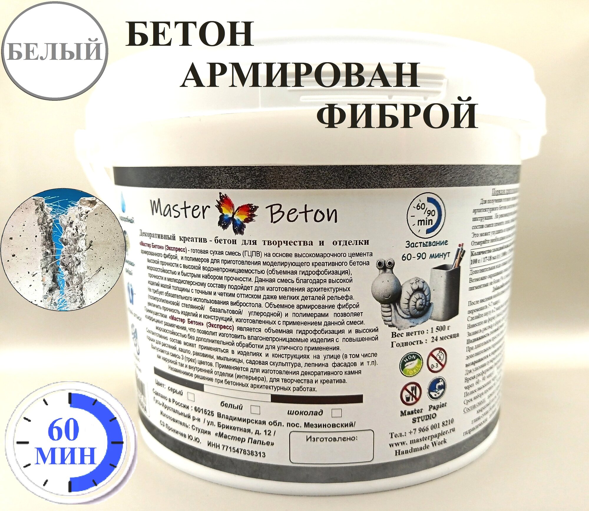 10 цен на Креатив-Бетон (экспресс) декоративный армированный водостойкий для творчества, сухая смесь белая 1500 г