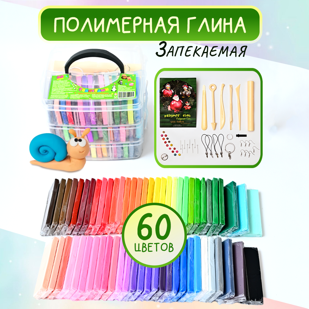 10 цен на Глина полимерная для лепки 60 цветов