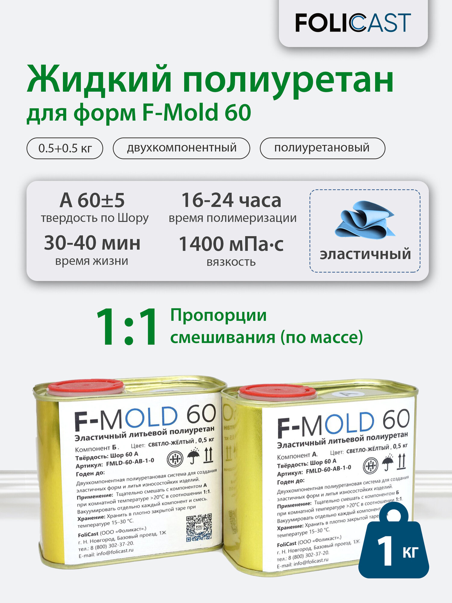Жидкий Эластичный литьевой полиуретан для форм F-Mold-60 (1кг) (0.5+0.5) информация: