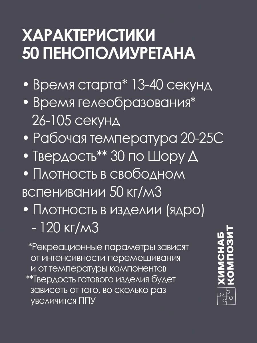 Пенополиуретан заливочный, 50 кг/м3, двухкомпонентная ППУ система, 6 кг информация: