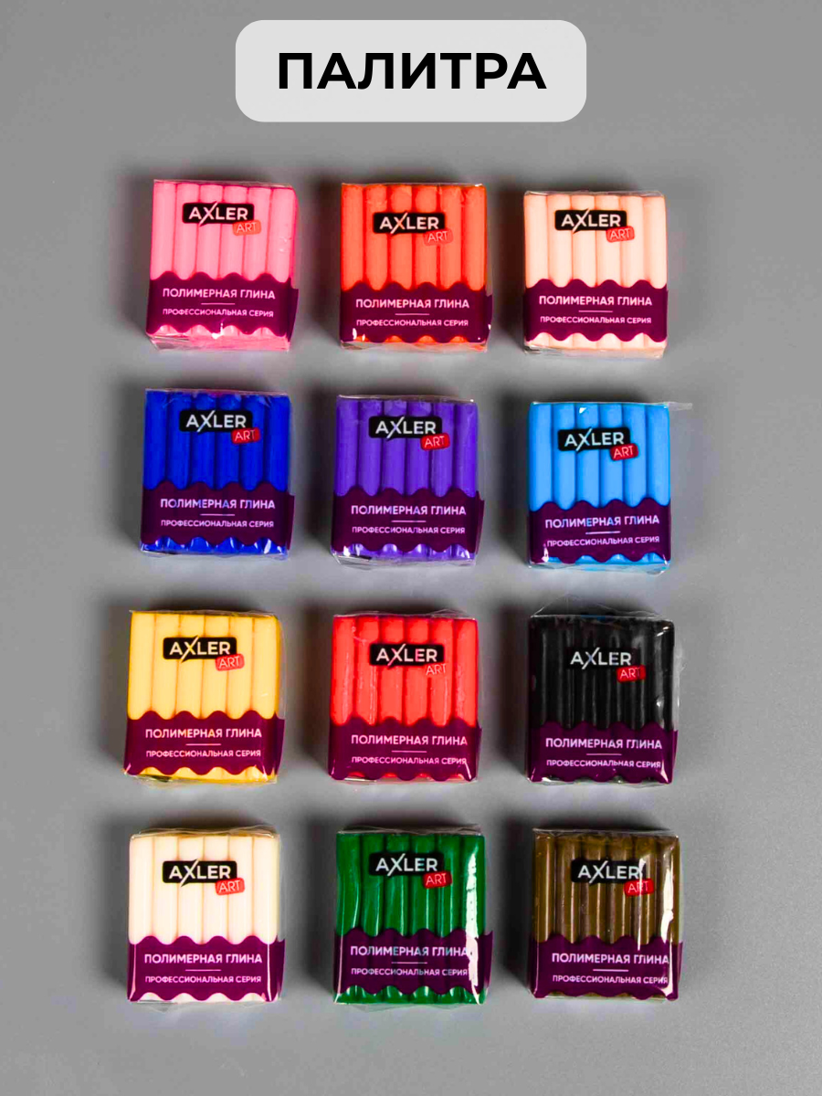 Полимерная глина запекаемая AXLER ART, цветная для лепки, набор для запекания, 12 цветов информация: