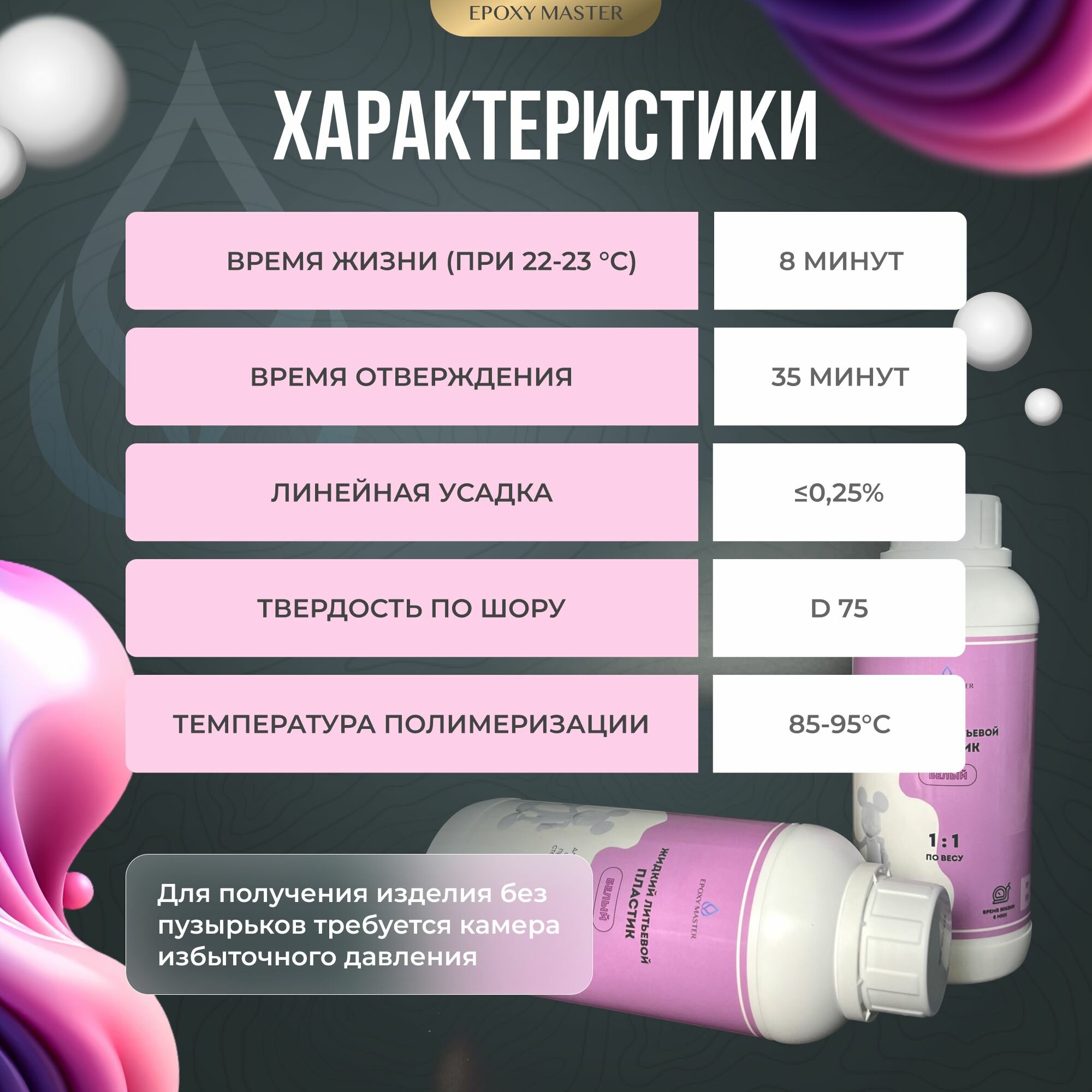 Жидкий пластик литьевой EpохyMaster ProPlast белый, для творчества и моделирования, 1 кг информация: