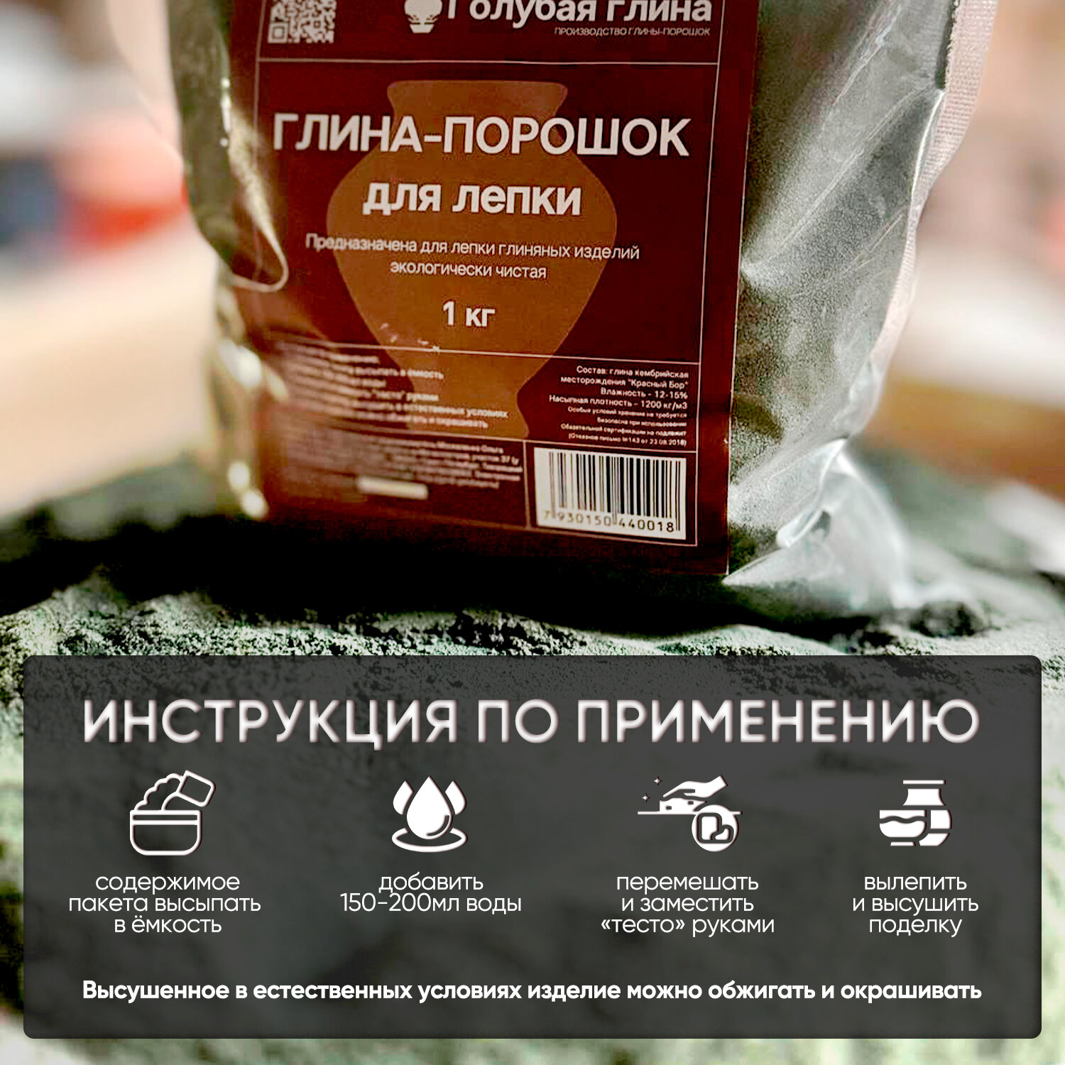 Глина для лепки самозатвердевающая голубая порошковая, 1 кг информация: