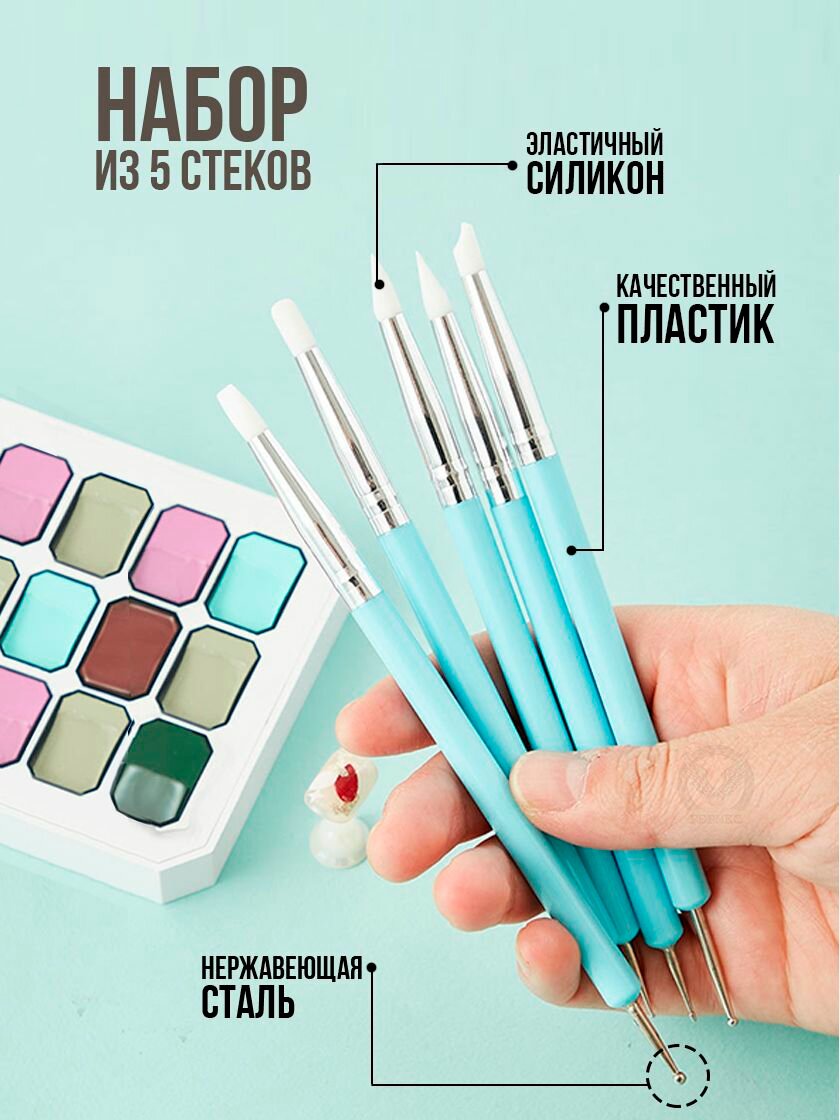 10 цен на Стеки для лепки и моделирования набор из 5 штук / Набор стеков с силиконовыми наконечниками и дотсами, инструменты лепки