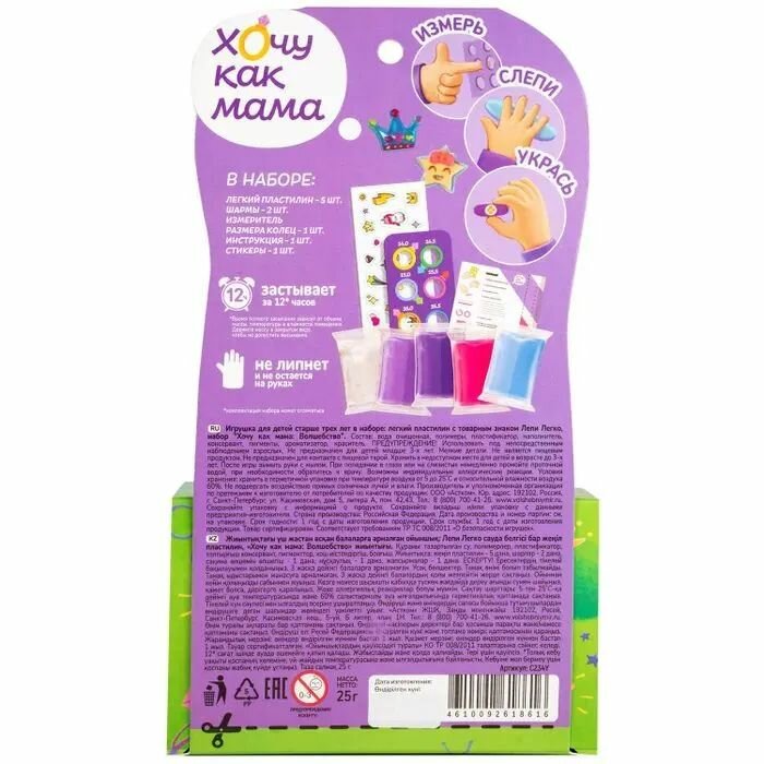Набор для лепки украшений из легкого пластилина Хочу как мама: Волшебство (C234Y) информация: