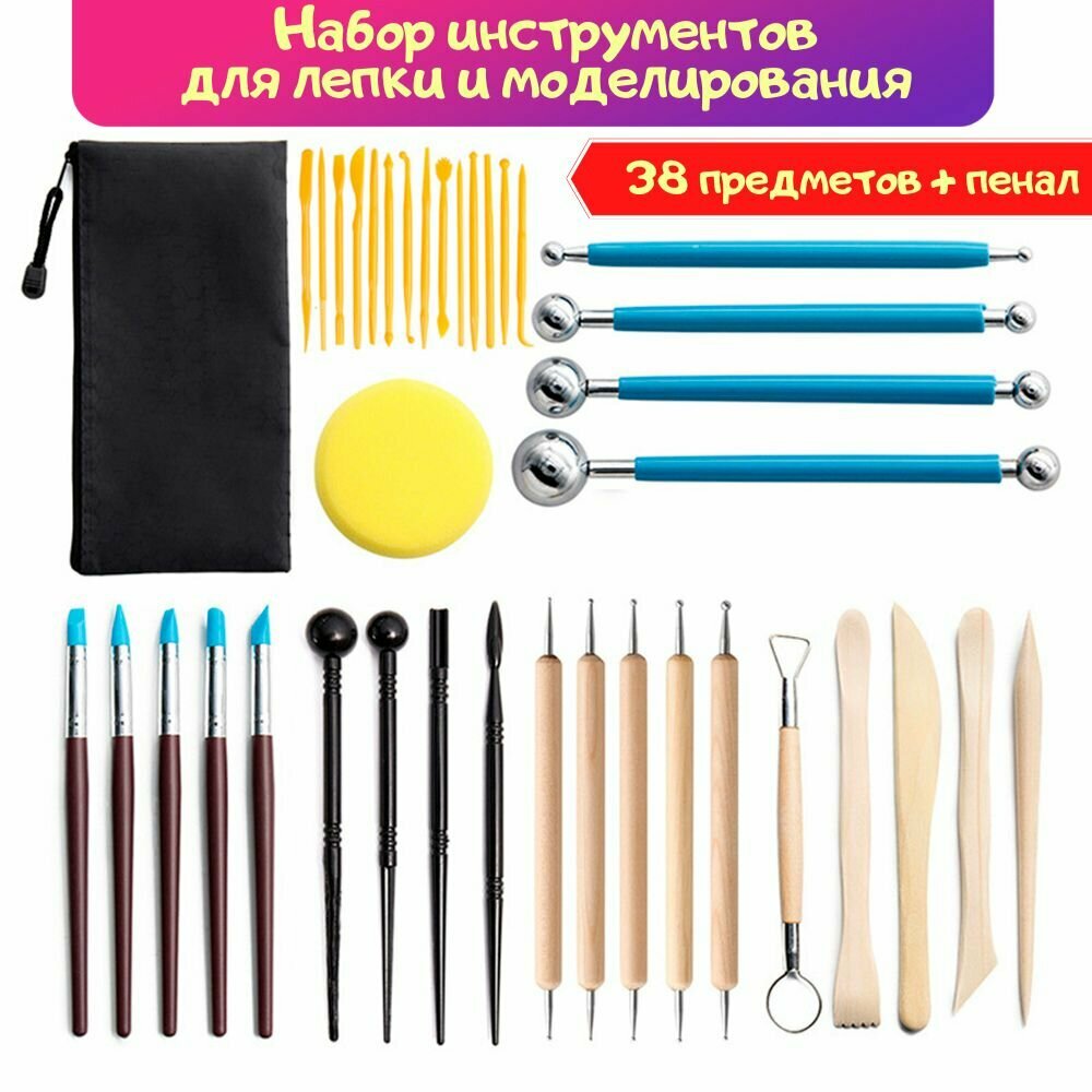 10 цен на Набор инструментов для лепки и моделирования в пенале из 38 предметов