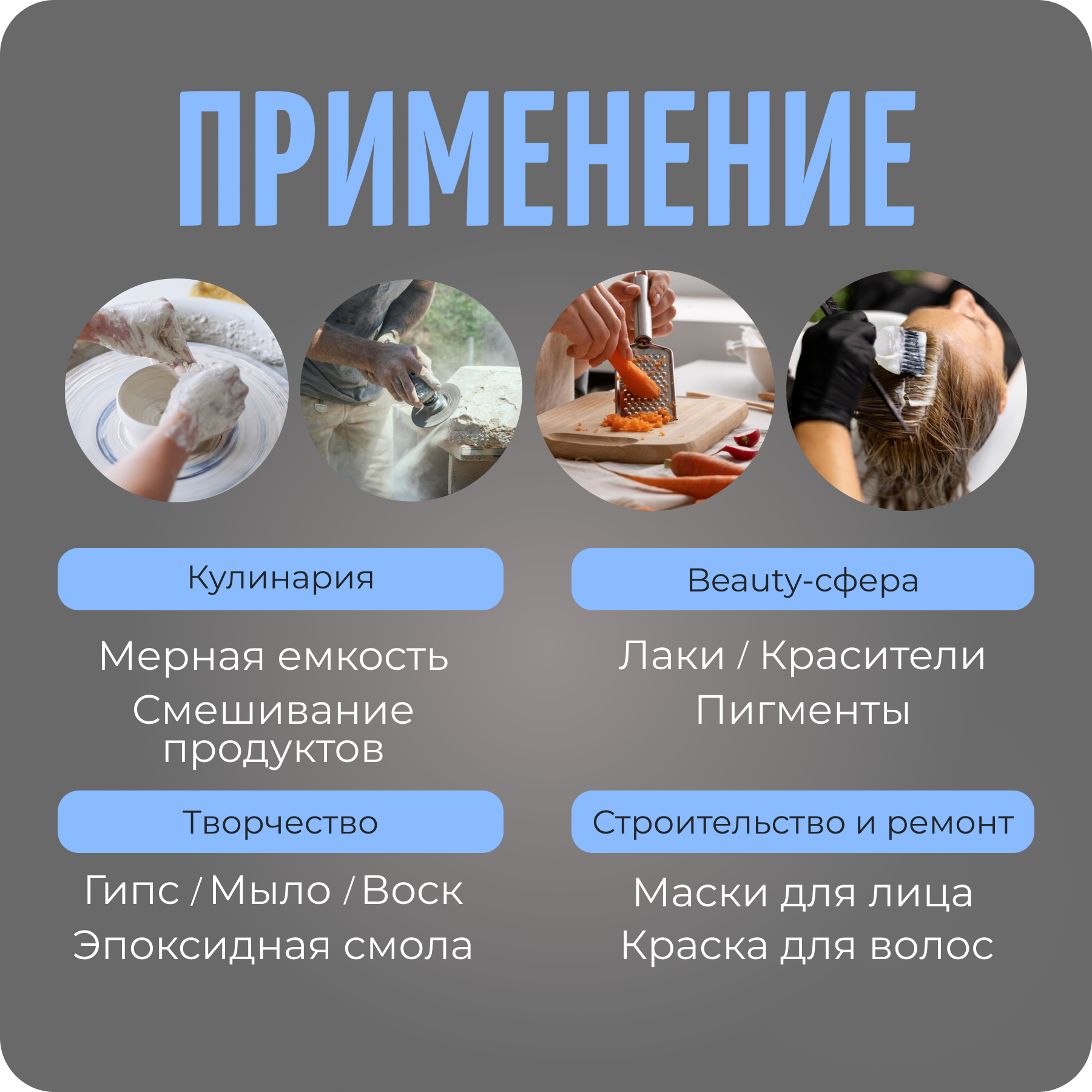 Мерные стаканы и чашки силиконовые, набор 4 шт, для творчества 366 ₽