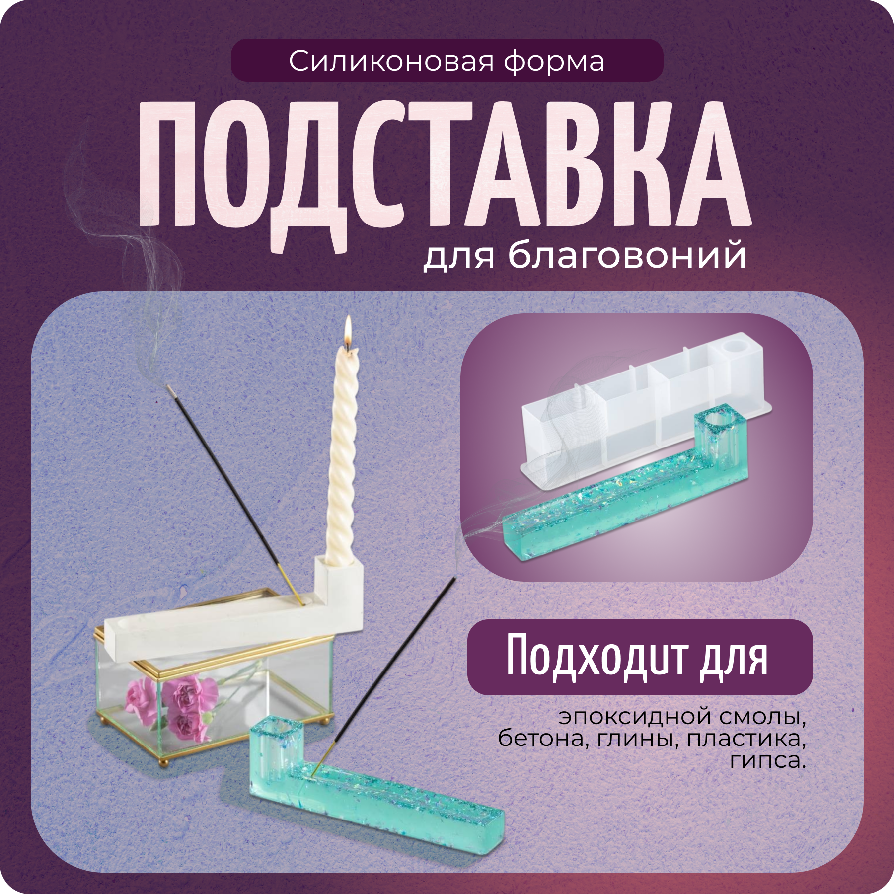 Молд силиконовый для гипса, эпоксидной смолы, форма подставка для благовоний, COLOR Si информация: