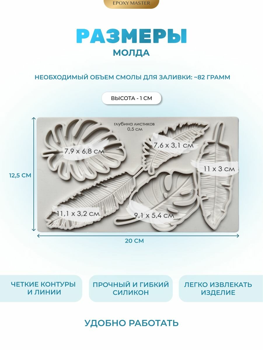 Силиконовый молд - Листья, 20х13см / Силиконовая форма для эпоксидной смолы информация: