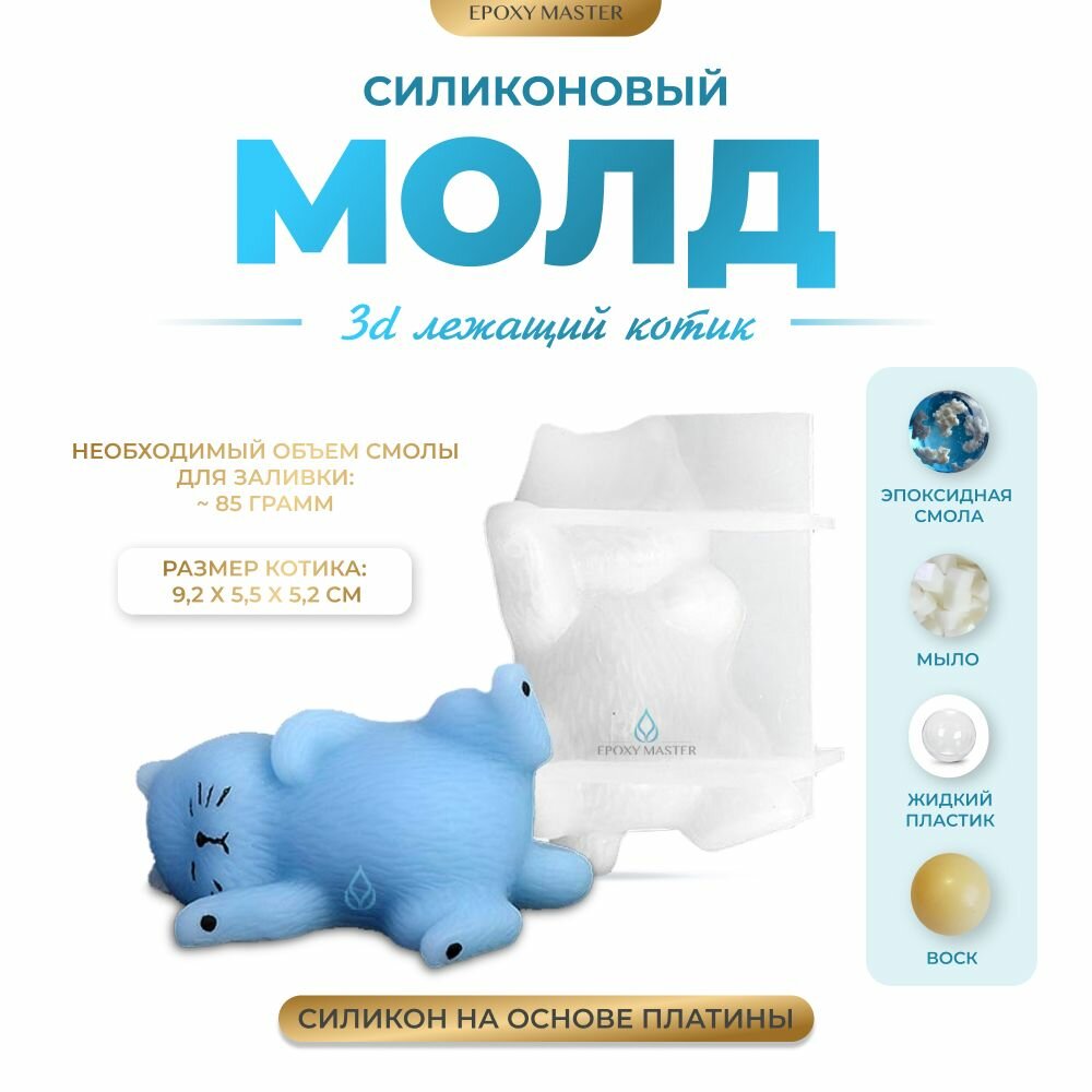 Силиконовый молд для эпоксидной смолы EPOXYMASTER 3D лежащий котик, 9х5см информация: