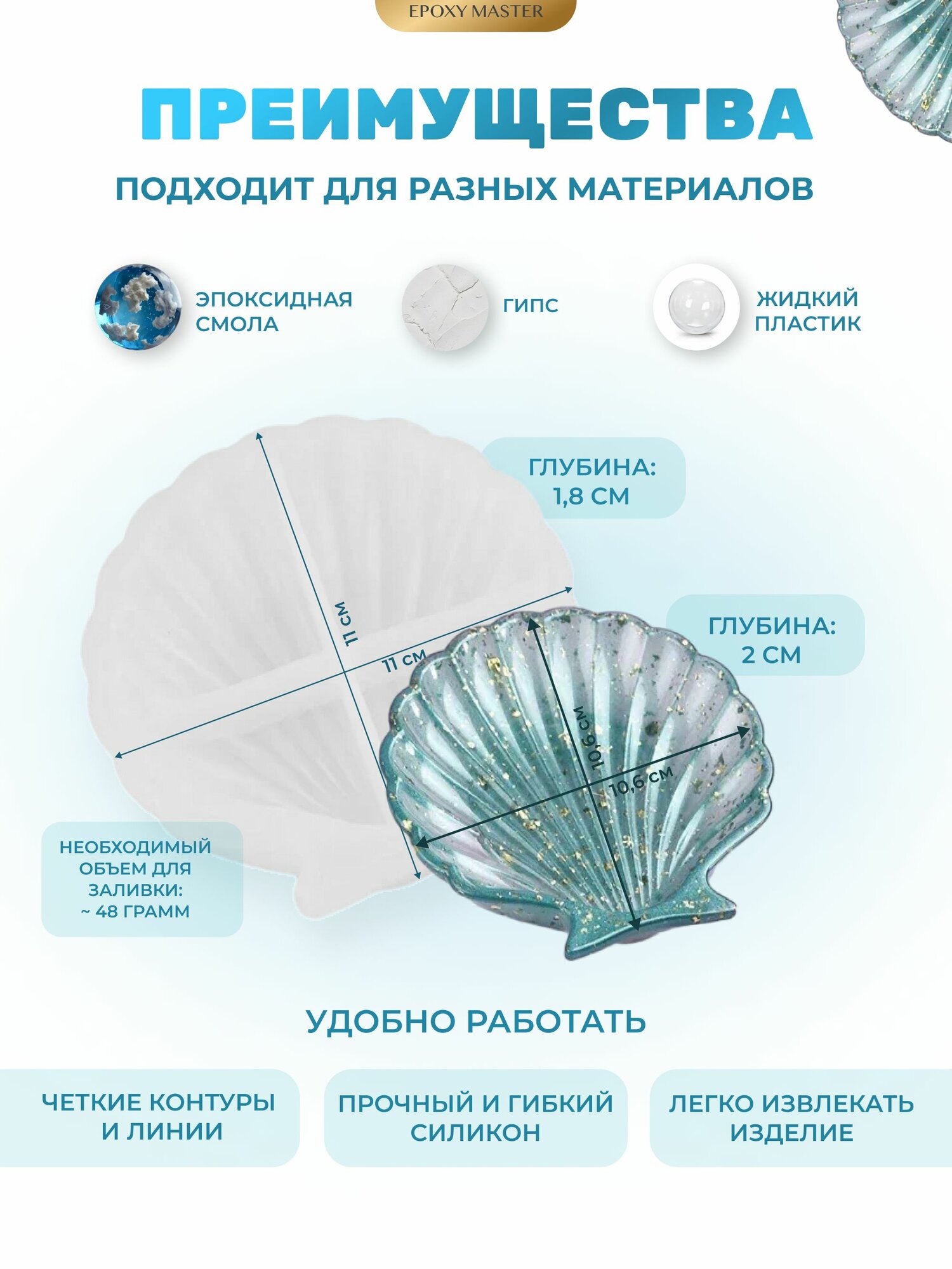 Силиконовый молд для эпоксидной смолы EPOXYMASTER Блюдце морская ракушка, 11х11 см информация: