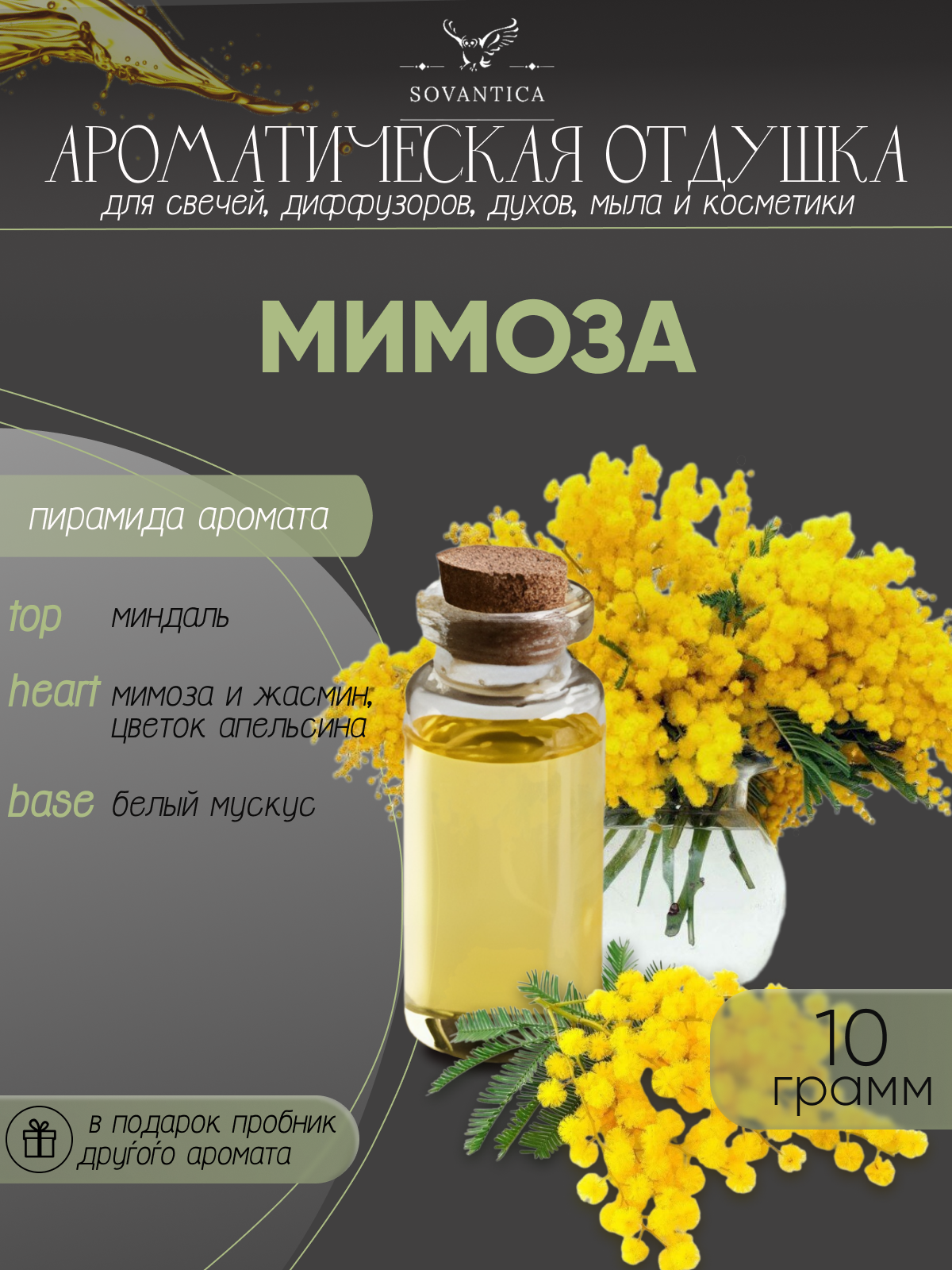 Ароматическая отдушка Мимоза 10гр Sovantica от бренда Кема Клаб информация: