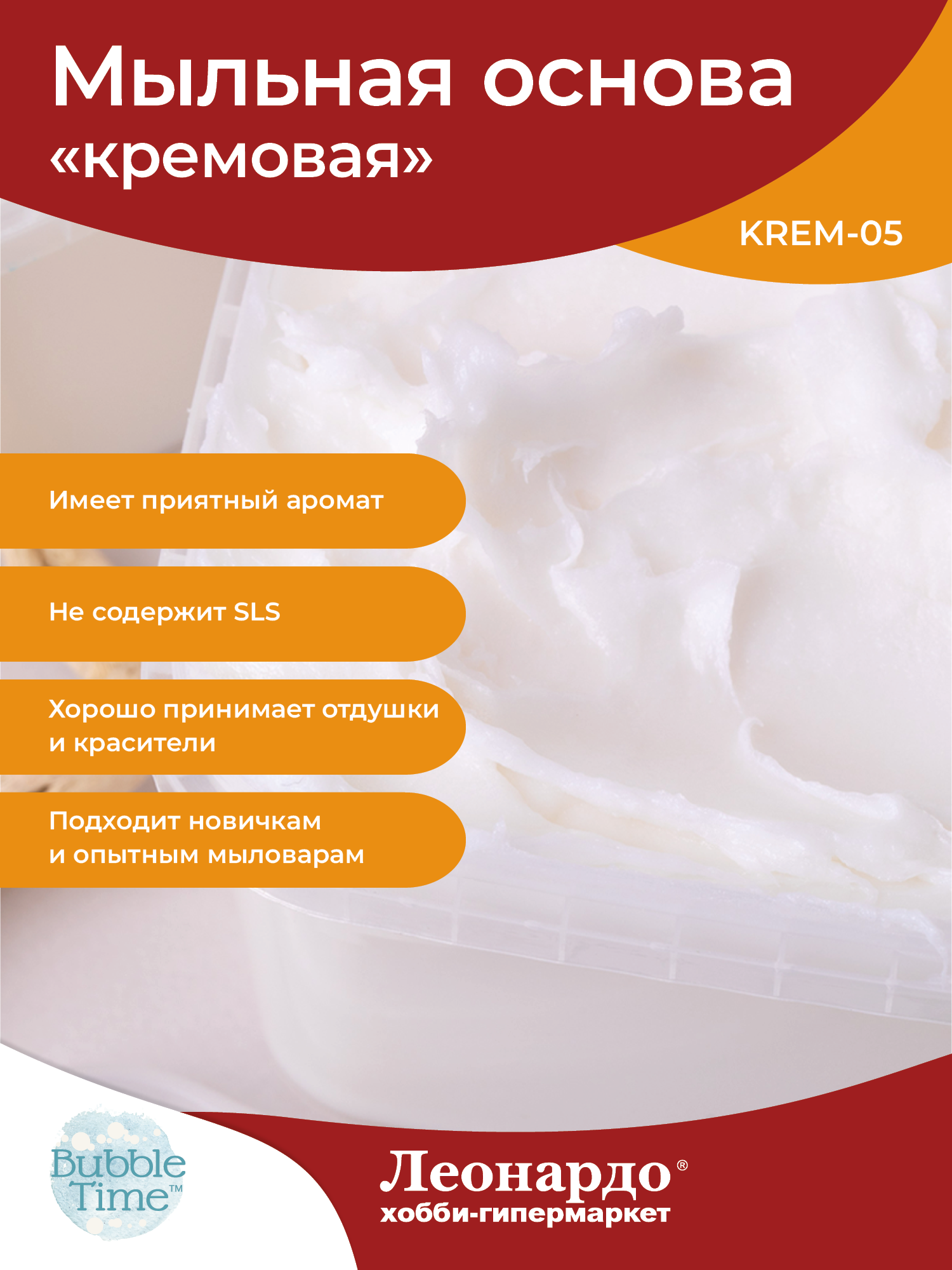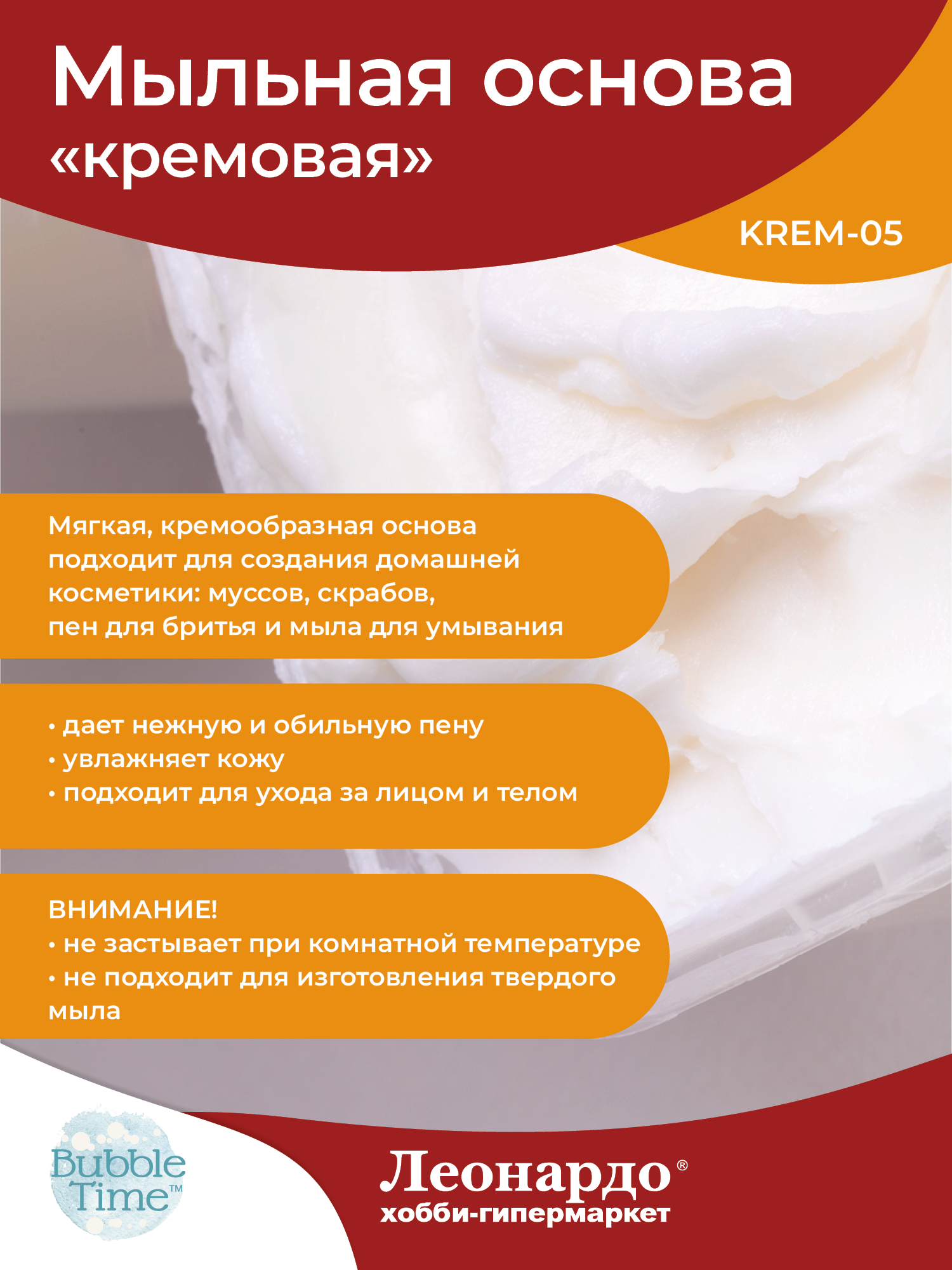 10 цен на "BUBBLE TIME" Мыльная основа "кремовая" SLS free KREM-05 0.5 кг Белая (кремообразная)