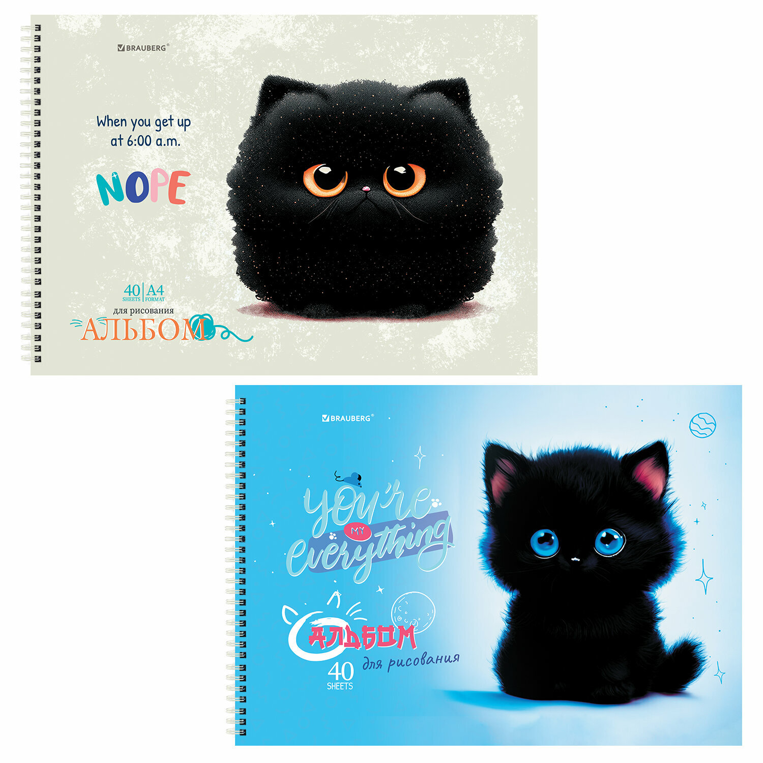 Альбом для рисования в школу А4 40 листов на спирали, набор 2 штуки, обложка картон, Brauberg Котики информация: