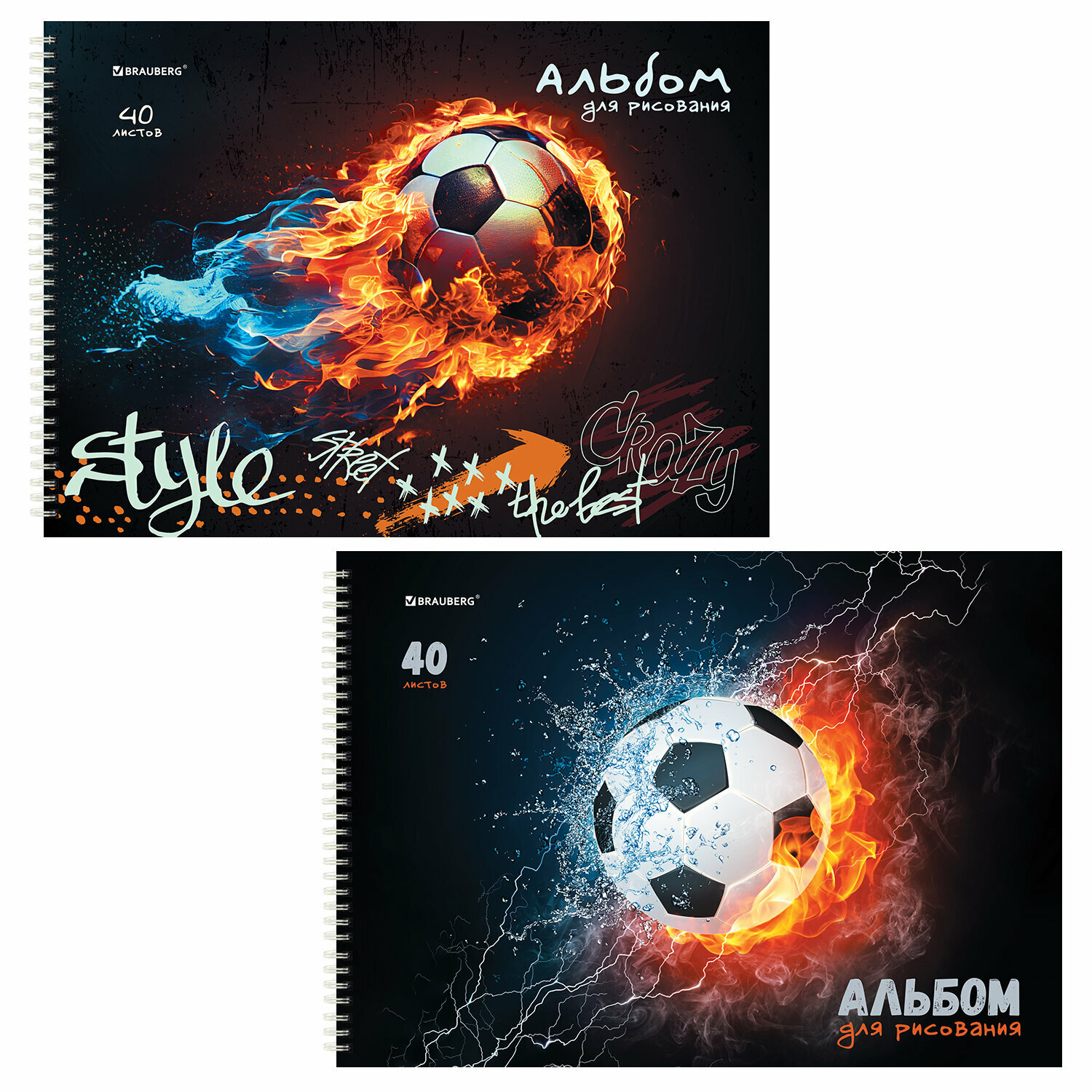 Альбом для рисования в школу А4 40 листов на спирали, набор 2 штуки, обложка картон, Brauberg Футбол информация: