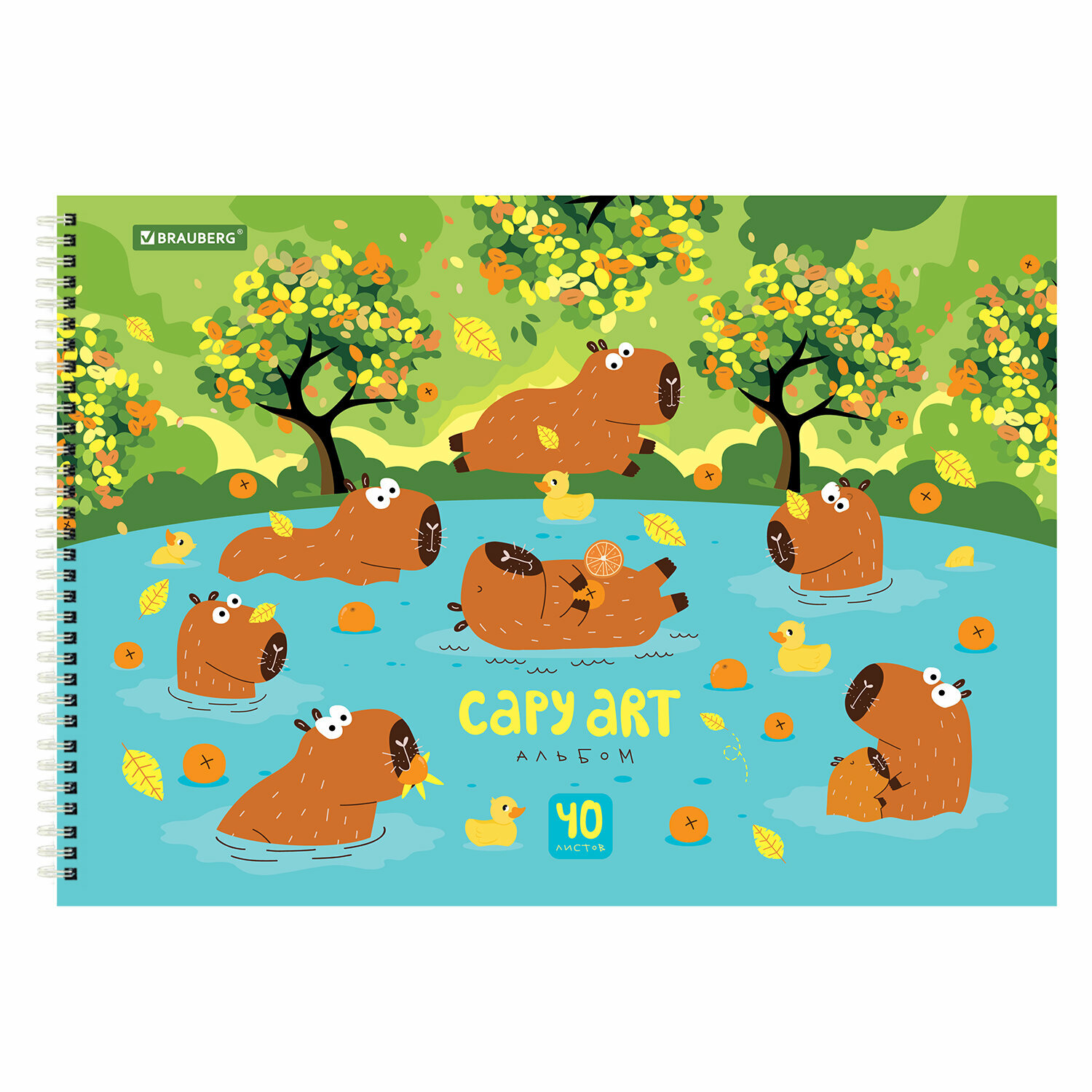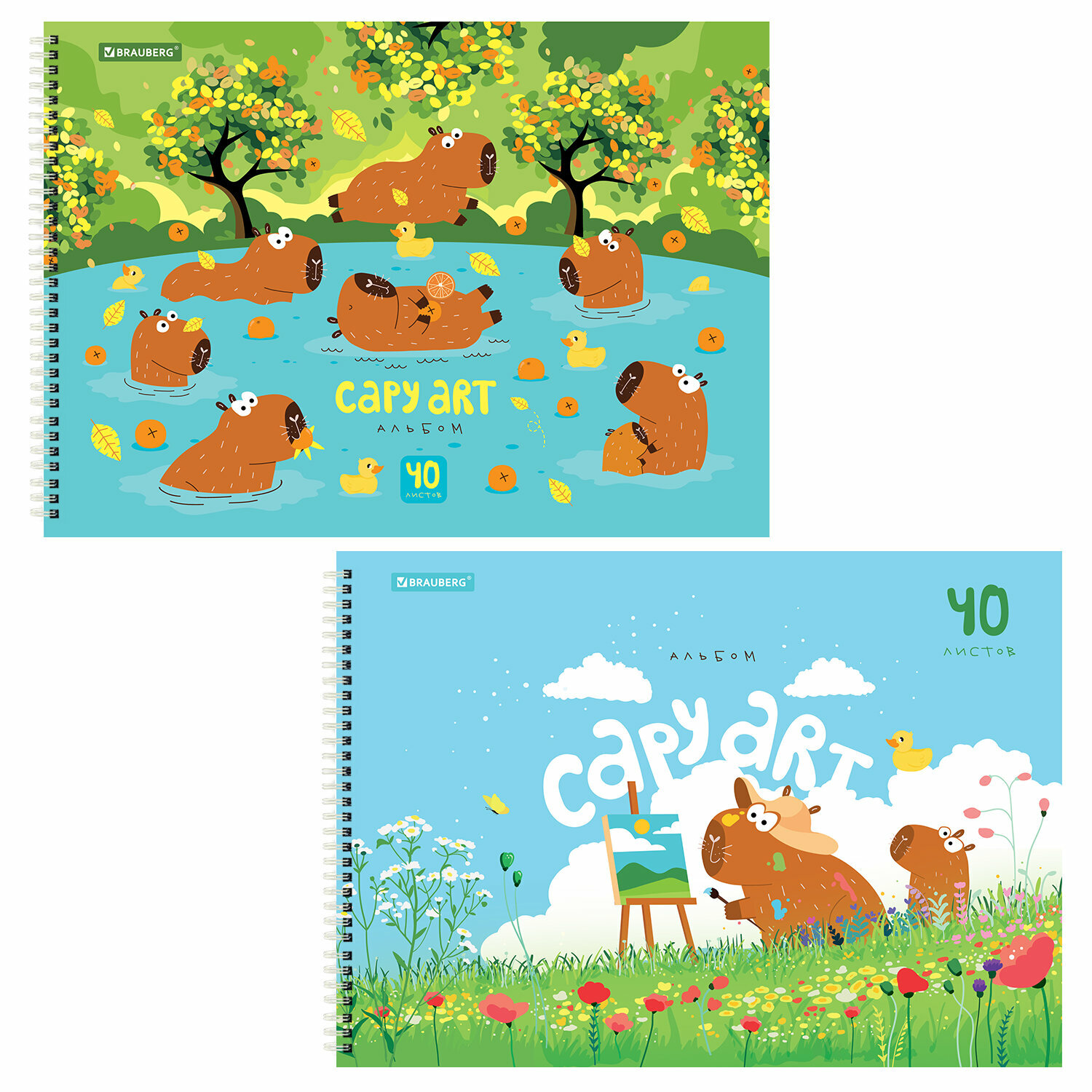 Альбом для рисования в школу А4 40 листов на спирали, набор 2 штуки, обложка картон, Brauberg Капибары, 107013 информация: