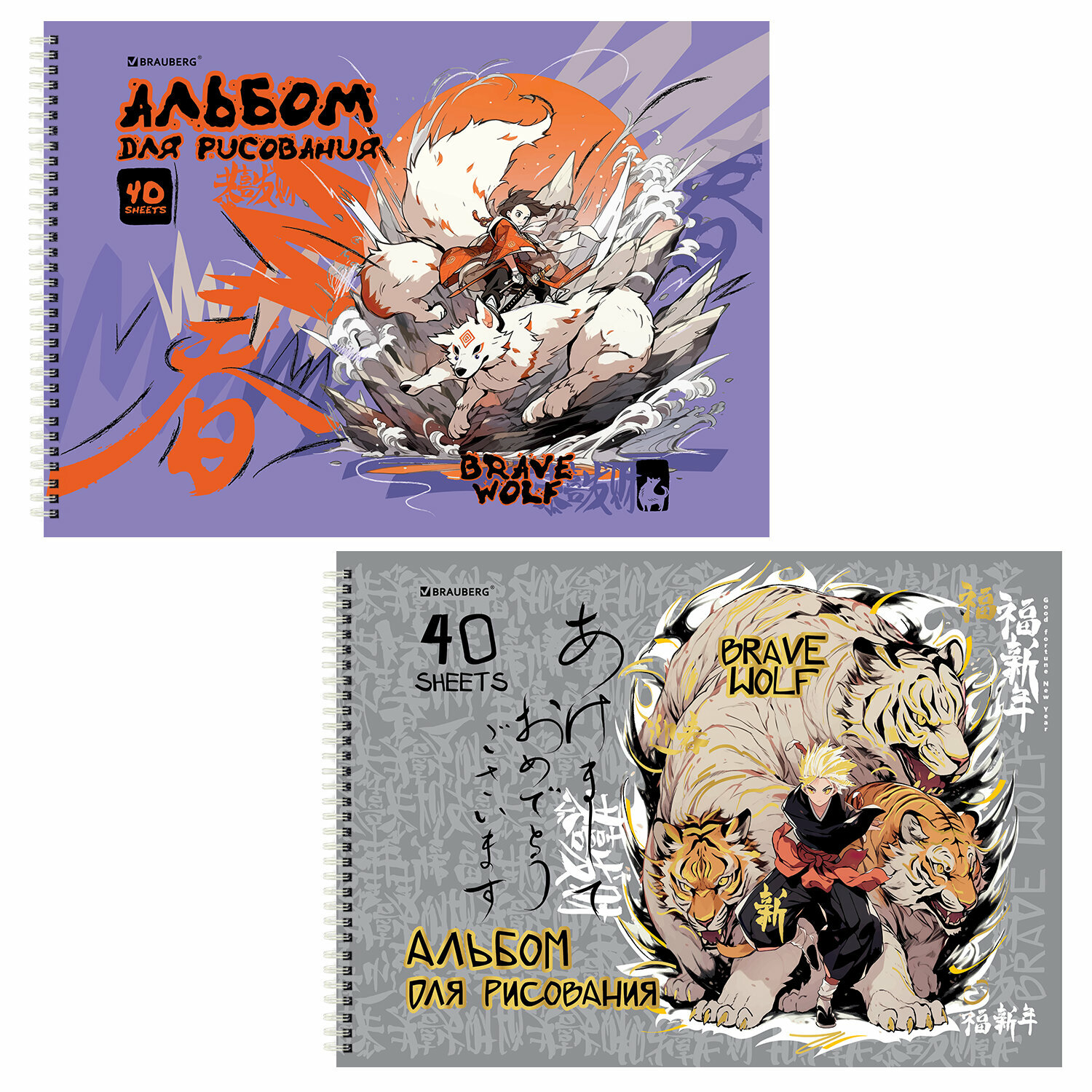 Альбом для рисования в школу А4 40 листов на спирали, набор 2 штуки, обложка картон, Brauberg Аниме, 107017 информация:
