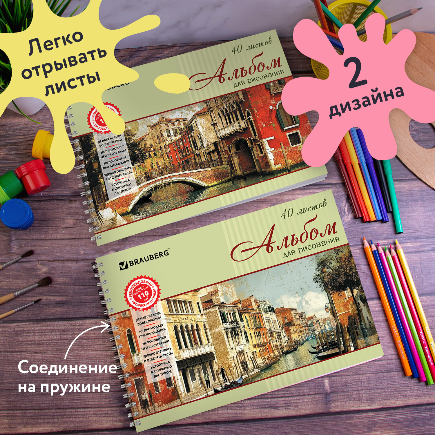 Альбом д/рис. А4 40 л, комплект 2 шт, гребень, обл. картон, BRAUBERG, 205х290 мм, Город, 880029 информация: