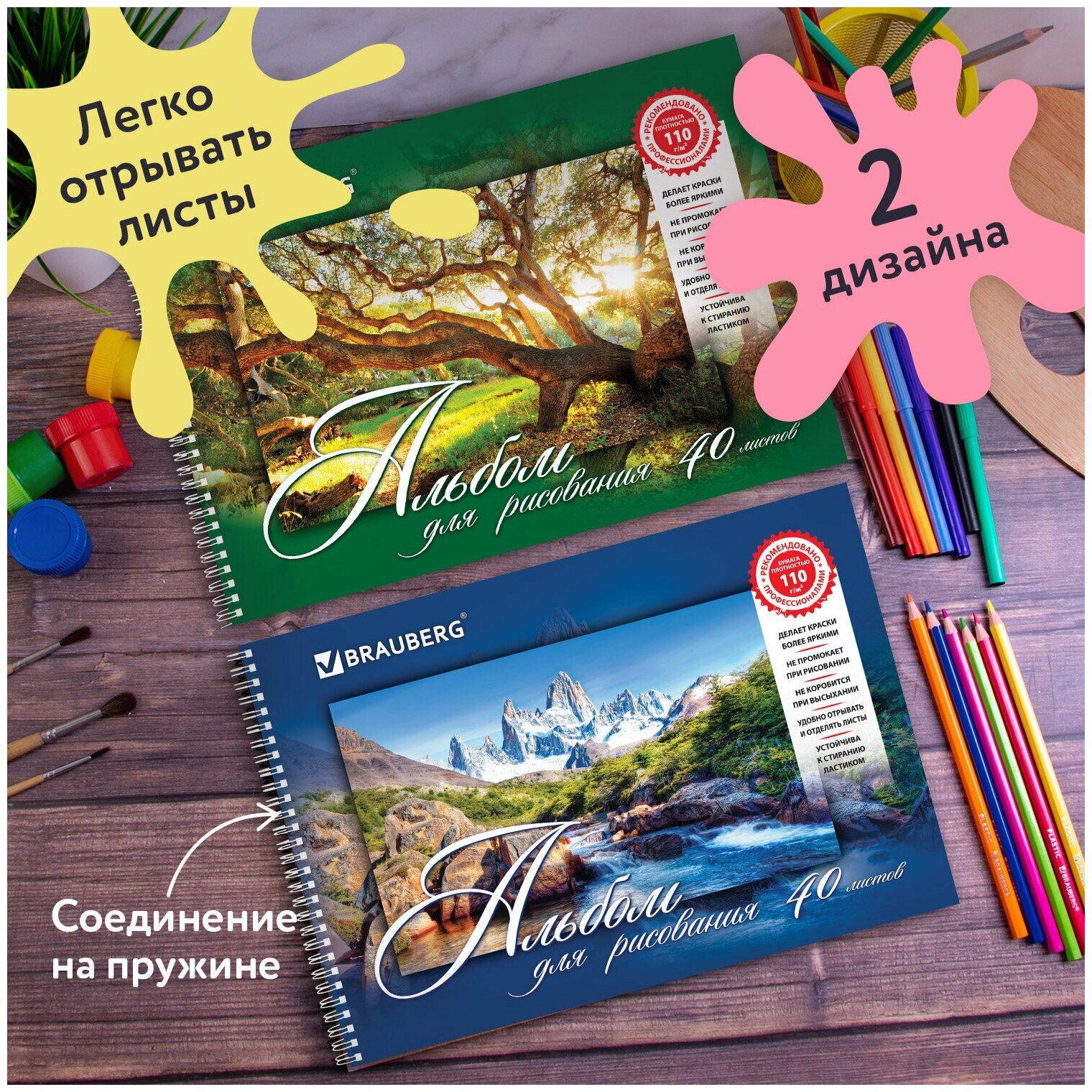 Альбом д/рис. А4 40 л, комплект 2 шт, гребень, обл. картон, BRAUBERG, 205х290 мм, Природа, 880031