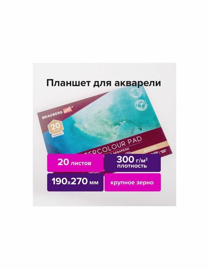 10 цен на Папка для акварели/планшет, 300 г/м2, 190х270 мм, склейка, крупное зерно, 20 л, BRAUBERG ART PREMIERE, 113247