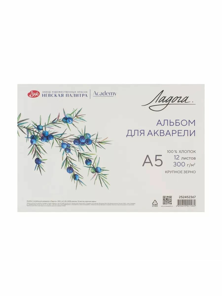 Альбом для рисования Невская палитра Ладога, А5, 100% хлопок, крупное зерно, 12 листов 252452367 информация:
