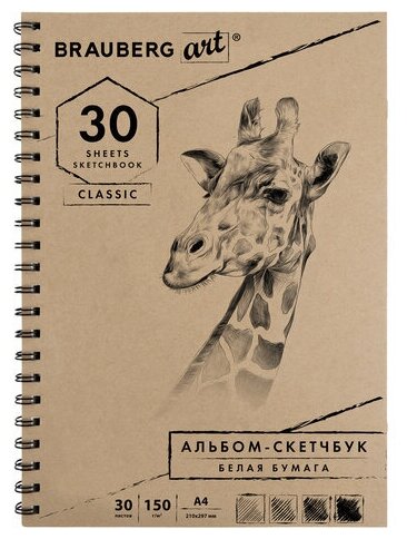 Скетчбук, белая бумага 150 г/м2, 210х297 мм, 30 л, гребень, BRAUBERG ART CLASSIC, 128949 (цена за 1 ед. товара) информация: