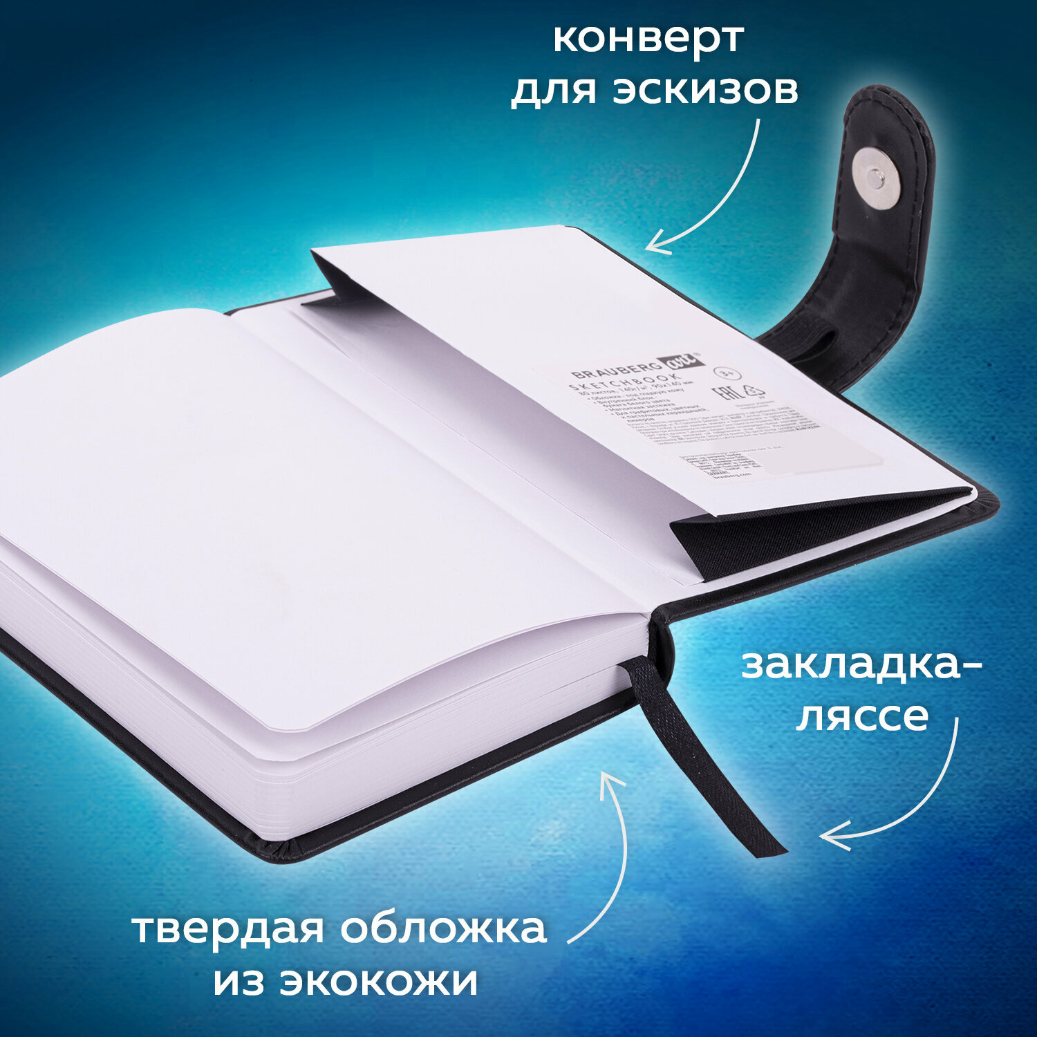 Отзывы на Скетчбук для рисования 9x14 см 80 листов, блокнот для скетчинга с застежкой, белая бумага 140 г/м2, обложка кожзам, Brauberg Art Classic, 116459