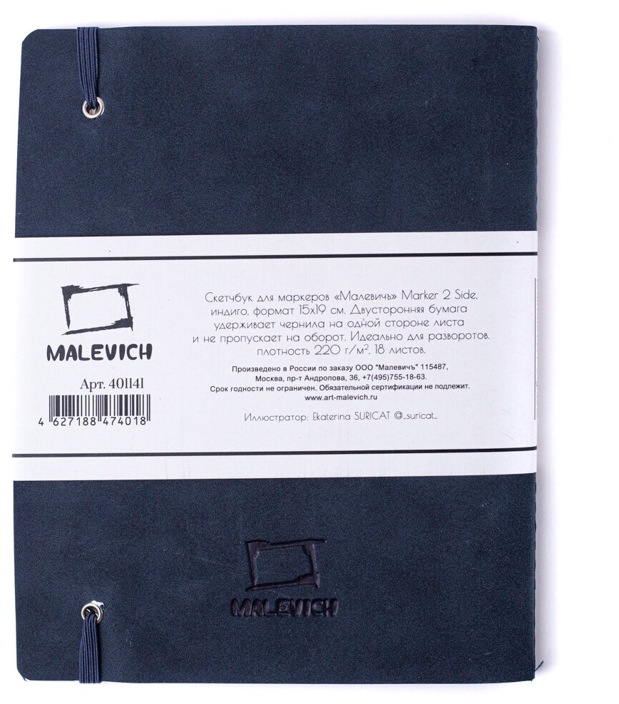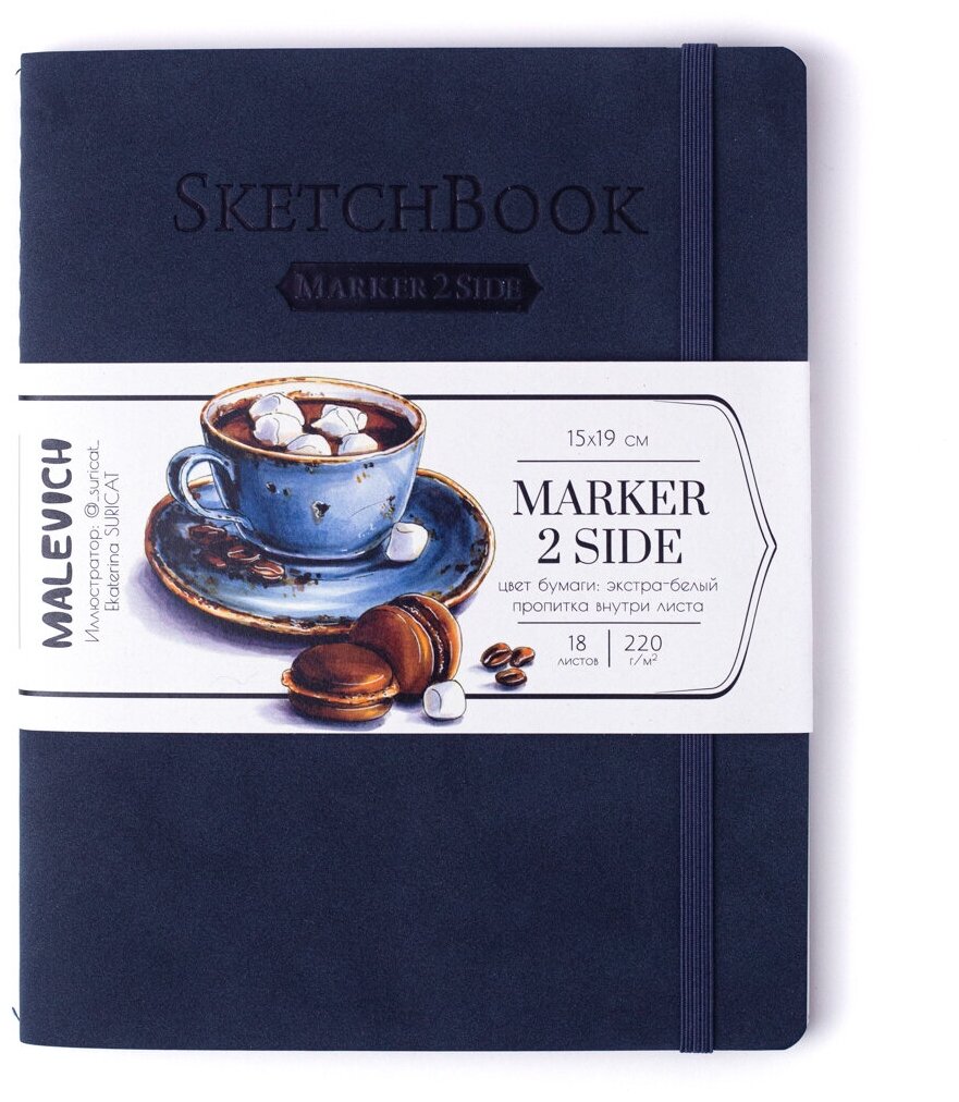 Скетчбук Малевичъ для маркеров Markers, индиго, 220 г/м, 15х20 см, 18л информация: