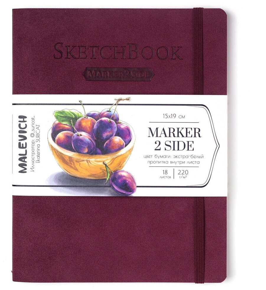 Отзывы на Скетчбук Малевичъ для маркеров Markers, бордовый, 220 г/м, 15х20 см, 18л