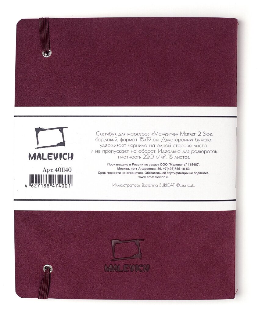 Скетчбук Малевичъ для маркеров Markers, бордовый, 220 г/м, 15х20 см, 18л информация: