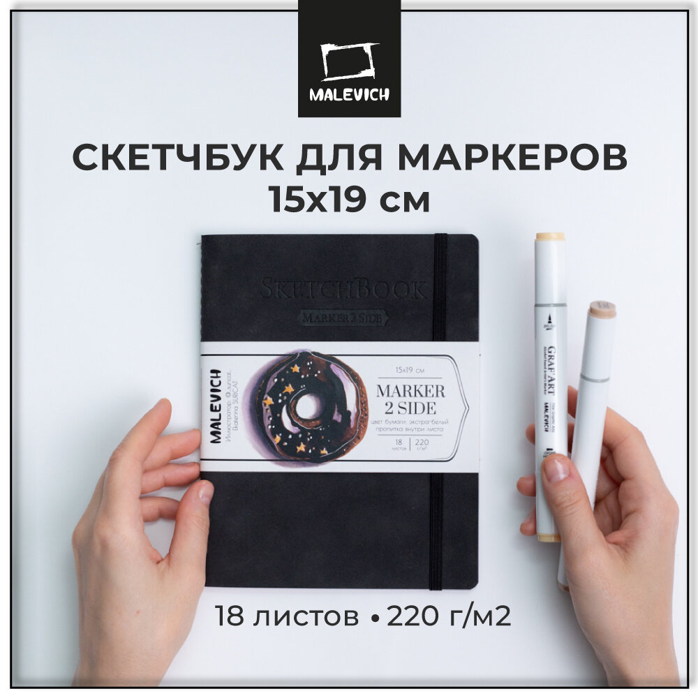 10 цен на Скетчбук Малевичъ для маркеров Markers, мокрый асфальт, 220 г/м, 15х20 см, 18л