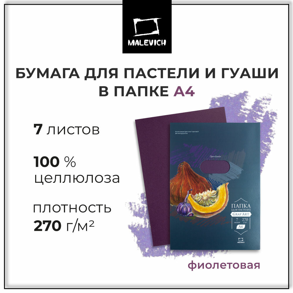 10 цен на Бумага для пастели А4 в папке, фиолетовая, 270 г/м, 7 листов