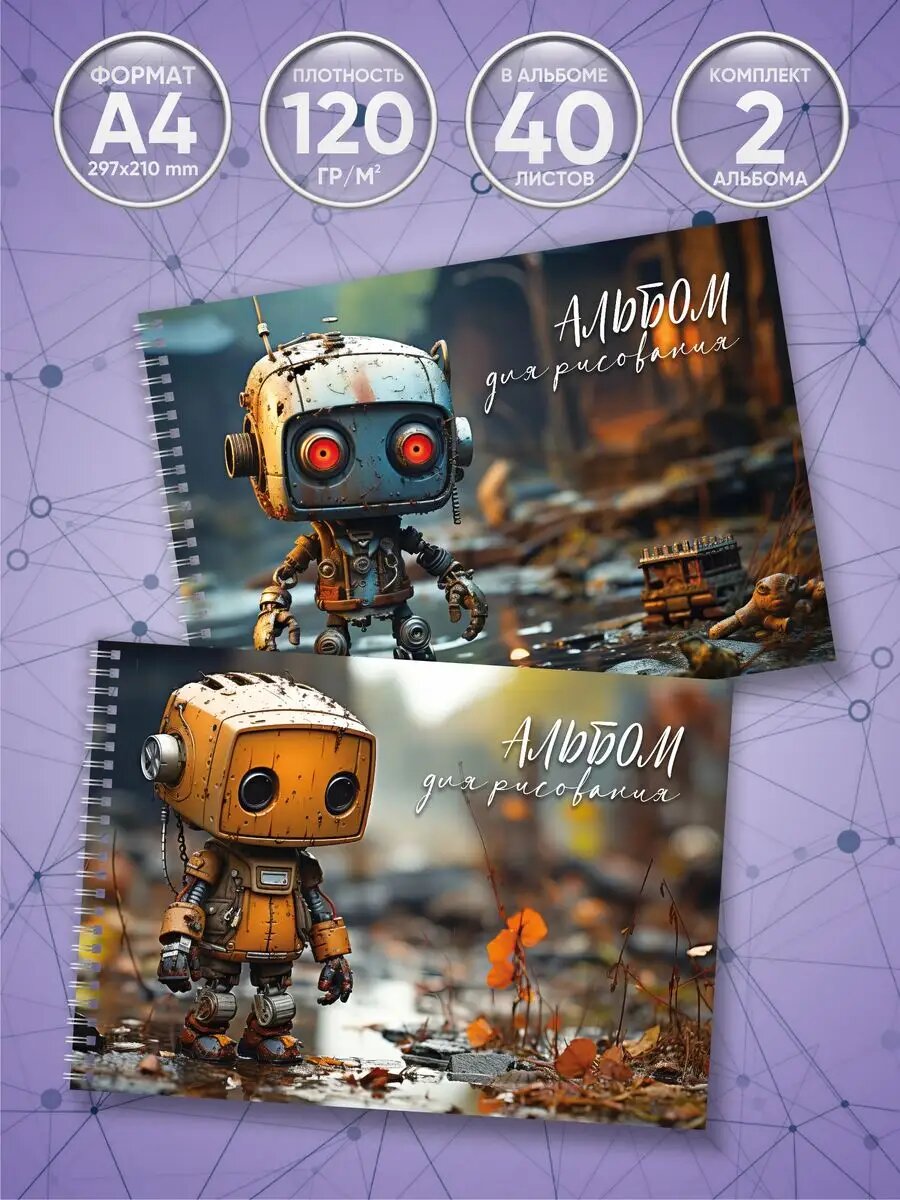 Альбом для рисования "Роботы" от бренда Типография "ТМТ", набор из 2 шт, формат А4, 40 листов информация:
