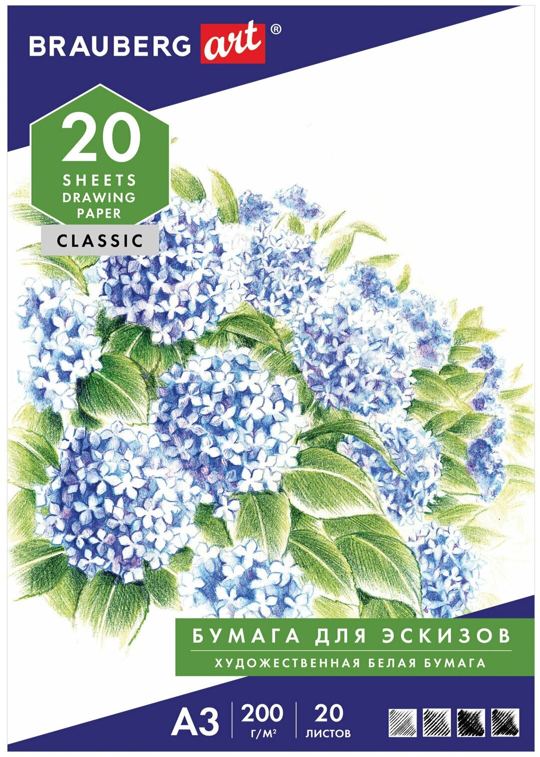 Бумага для рисования для школы Большого Формата А3, 20 листов, 200 г/м2, Brauberg, 297х420 мм, 129224 информация:
