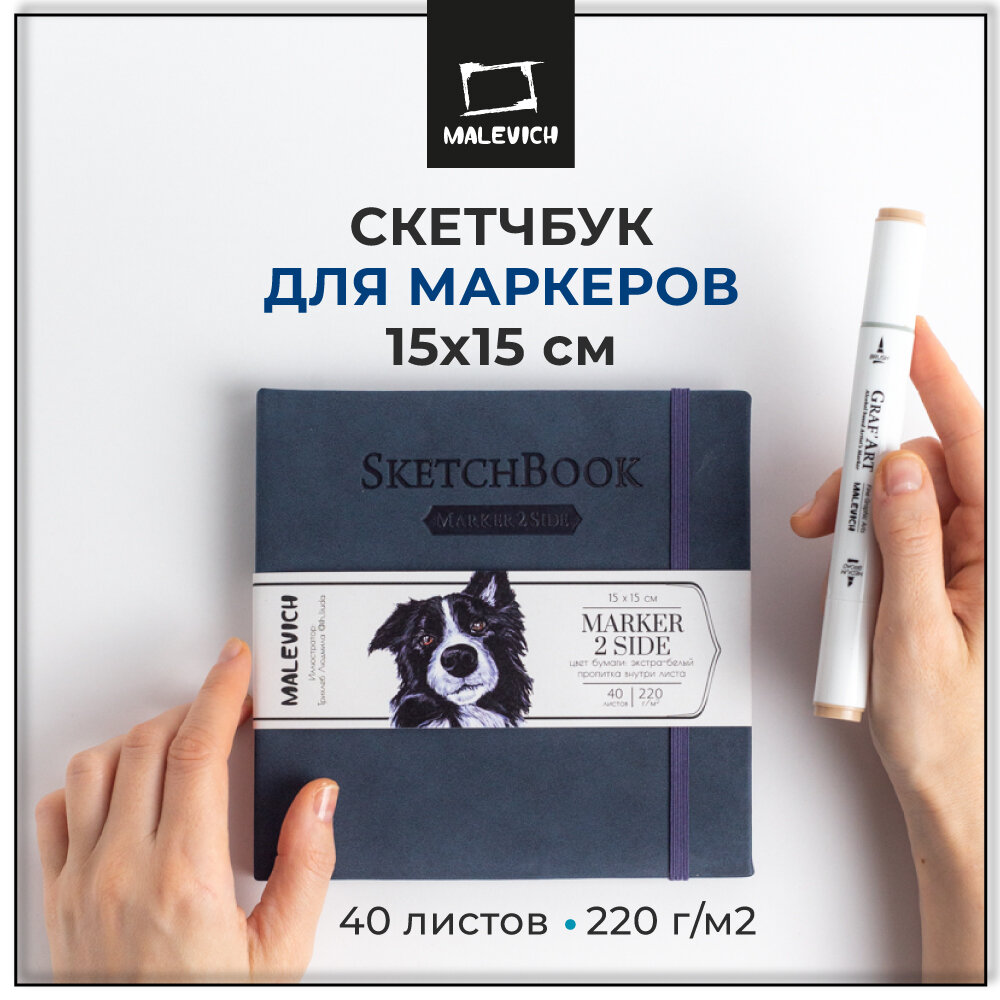 10 цен на Скетчбук для маркеров Малевичъ, двусторонняя бумага 220 г/м², 15х15 см, 40 л, индиго, 401146
