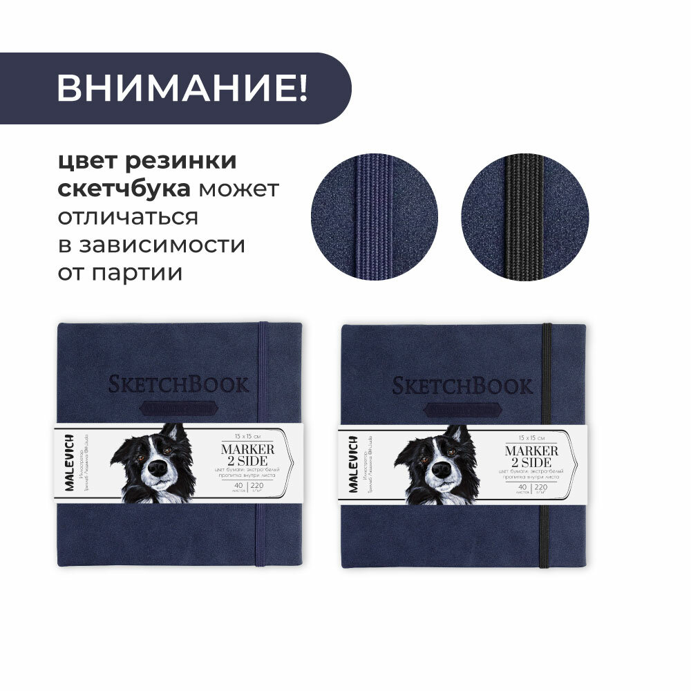 Скетчбук для маркеров Малевичъ, двусторонняя бумага 220 г/м², 15х15 см, 40 л, индиго, 401146 информация: