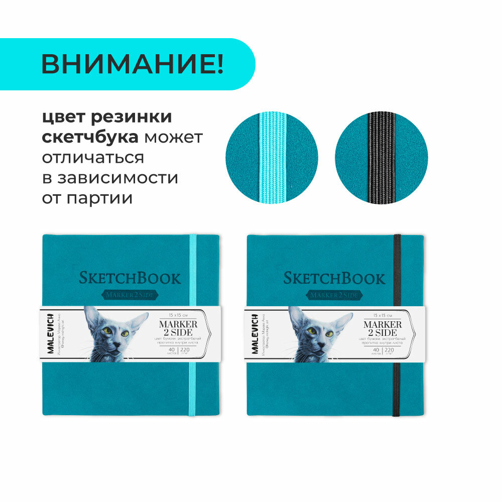 Скетчбук для маркеров Малевичъ, двусторонняя бумага 220 г/м², 15х15 см, 40 л, бирюзовый информация: