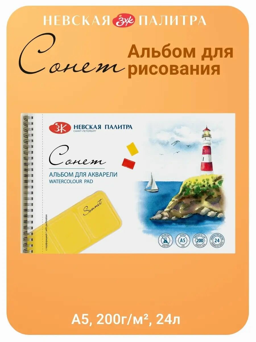 10 цен на Альбом для рисования на гребне Невская палитра Сонет, А5, 24 листа, 100% целлюлоза 80451622