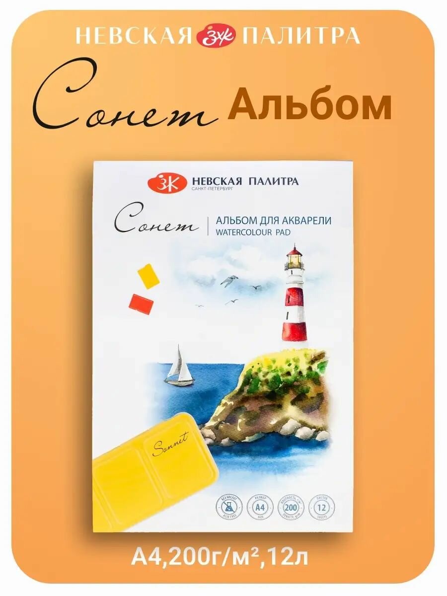 Альбом для рисования для акварели Невская палитра Сонет, А4, 12 л, среднее зерно 80451641 информация: