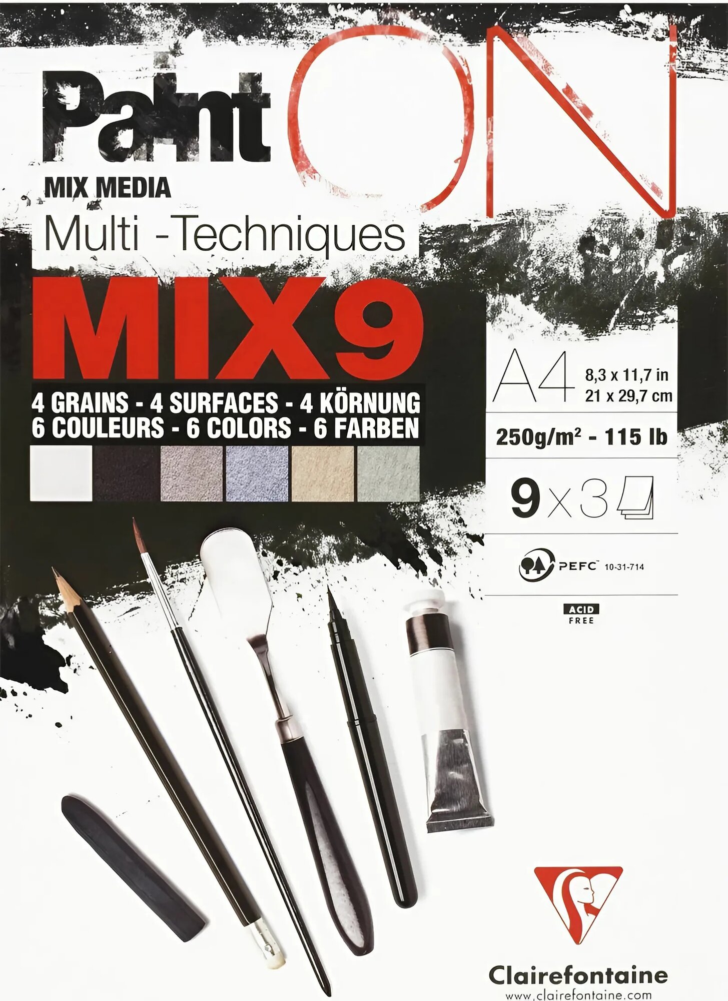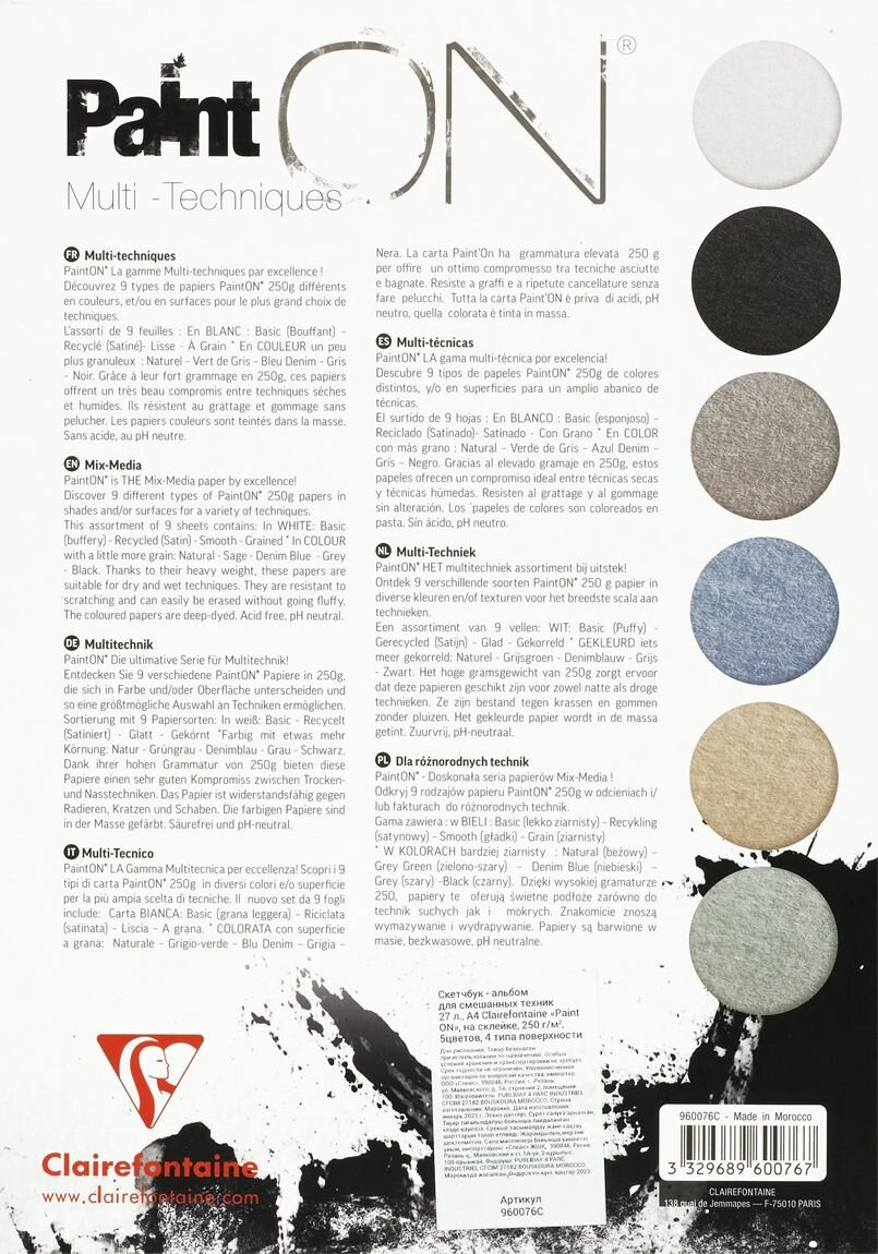 Скетчбук-альбом Clairefontaine "Paint ON" для смешанных техник 27л, А4, 250г/м2, 5 цветов, 4 типа поверхности информация: