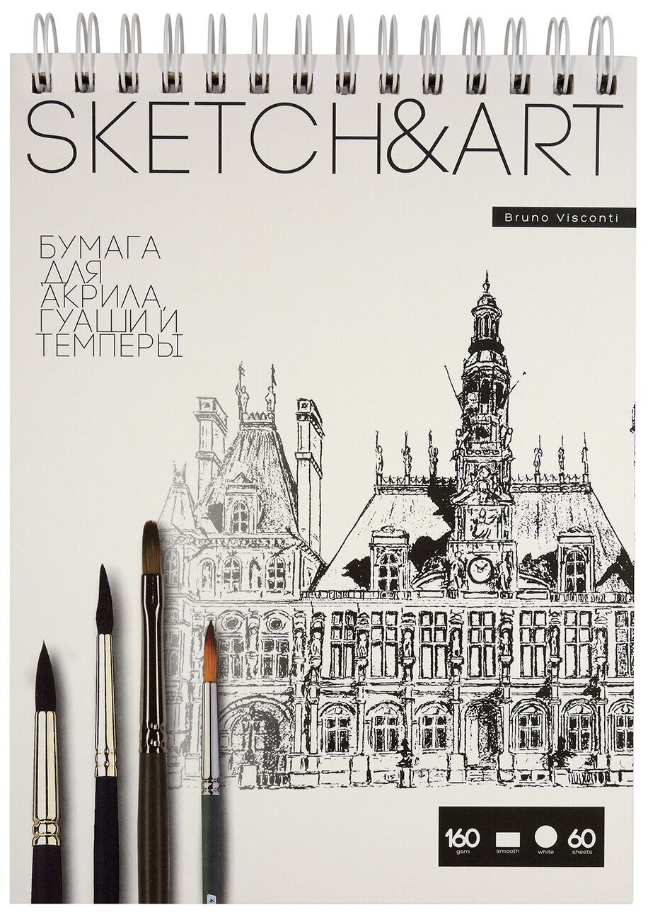 10 цен на SKETCHBOOK SKETCH&ART BV,185х250 мм, 60 Л. 160 ГР. на гребне, для акрила, гуаши И темперы, Арт. 1-60-559/01