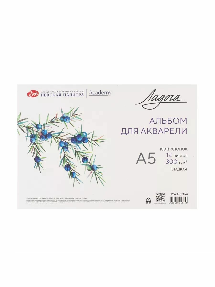 Альбом для рисования Невская палитра Ладога, А5, 100% хлопок, гладкая, 12 листов 252452364 информация: