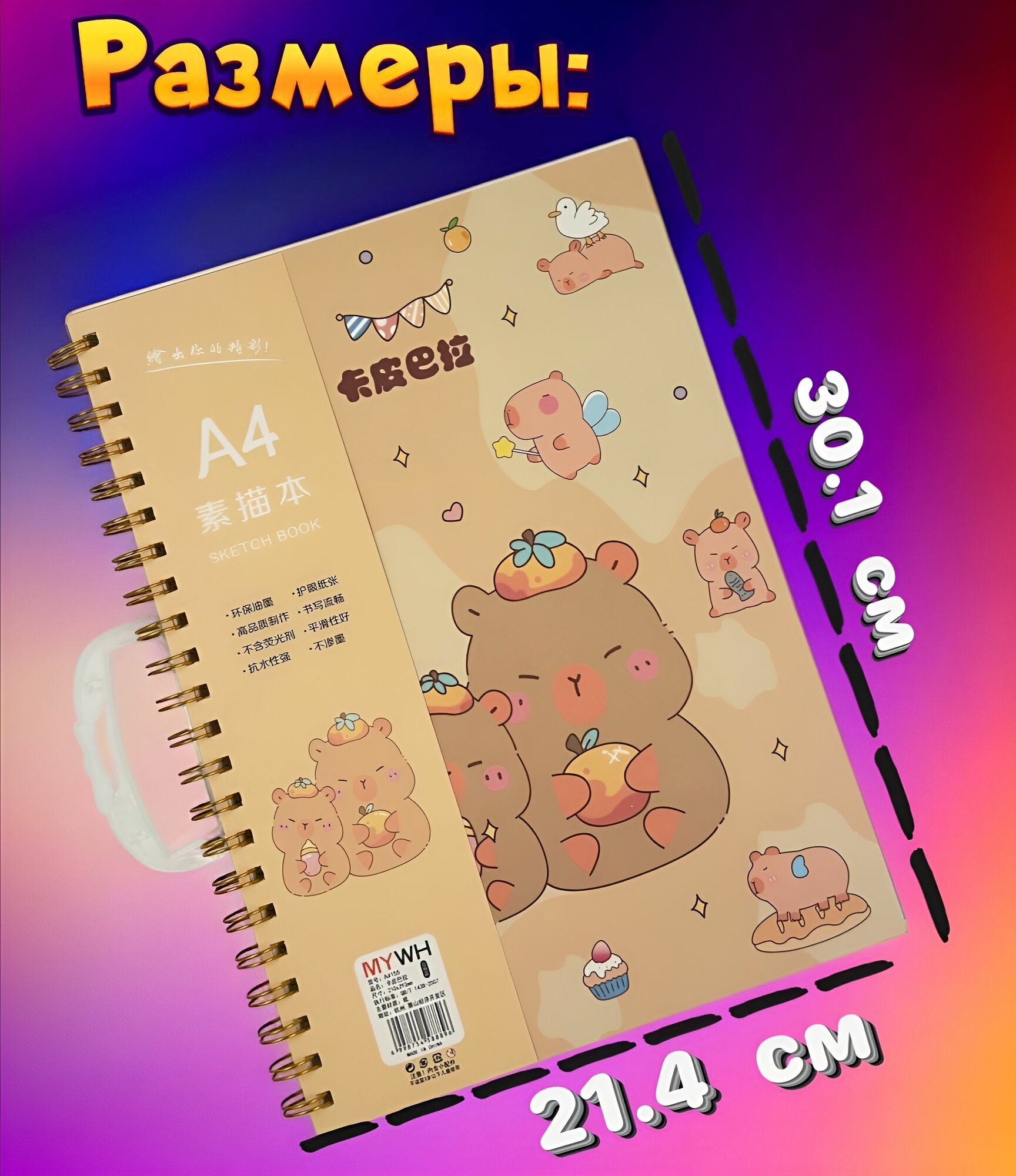 10 цен на Скетчбук А4 "Капибара", альбом для рисования для детей и взрослых