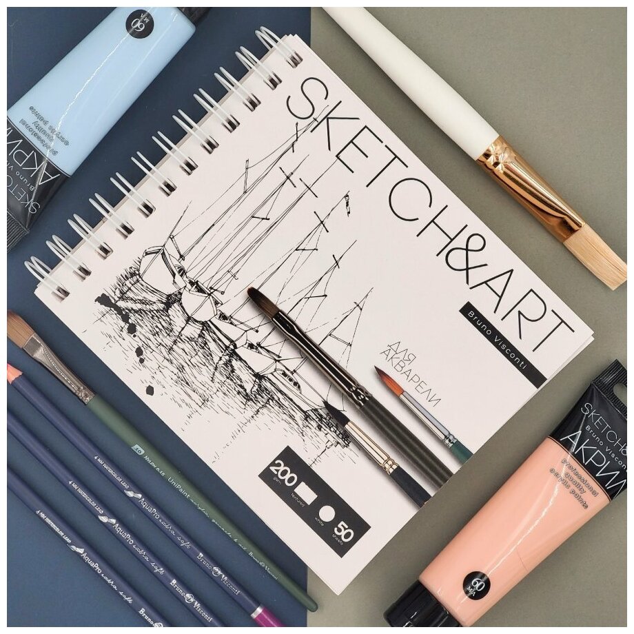 10 цен на SKETCHBOOK SKETCH&ART BV,180х155 мм, 50 Л. 200 гр. на гребне, для акварели, Арт. 1-50-555/02
